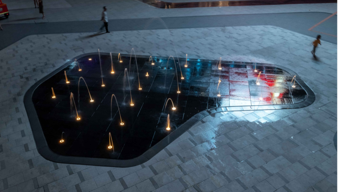 地面铺装过程中采用现在比较通用的景观精装化的施工工艺和要求进行质量控制。除了做到了传统景观室外要求结实、耐用、整体美观外,在各种材料的拼缝、磨边、倒角等细节上达到室内精装工程的标准。