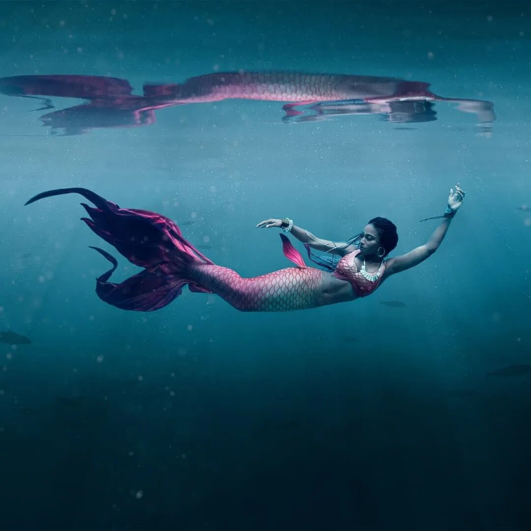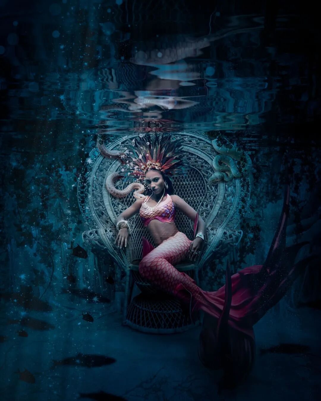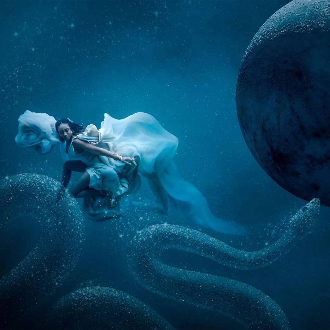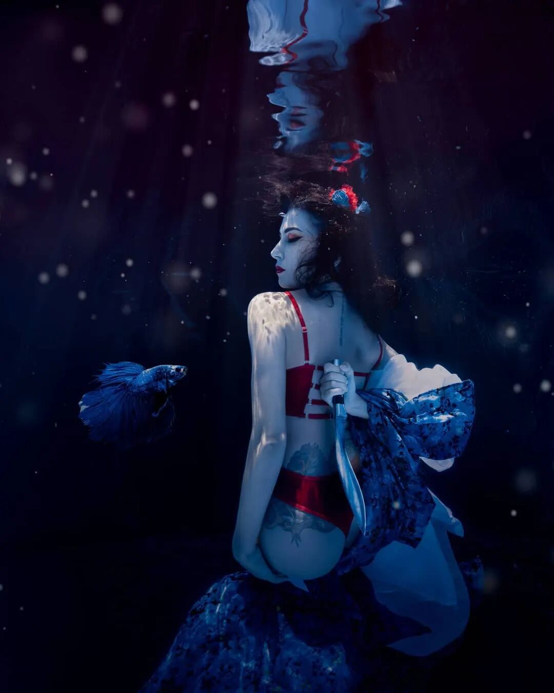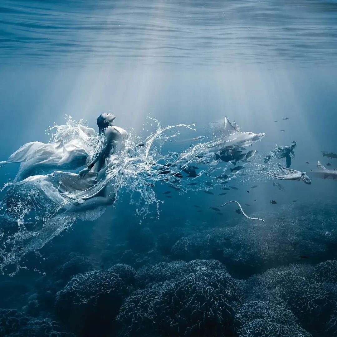 艺术家也用他们的作品去歌颂和赞美海洋之美,一位名叫夏洛特·鲍里斯的摄影师,就专门拍摄水下摄影作品,她的摄影作品题材十分丰富,既有写实作品也有利用数字技术处理的超现实作品。