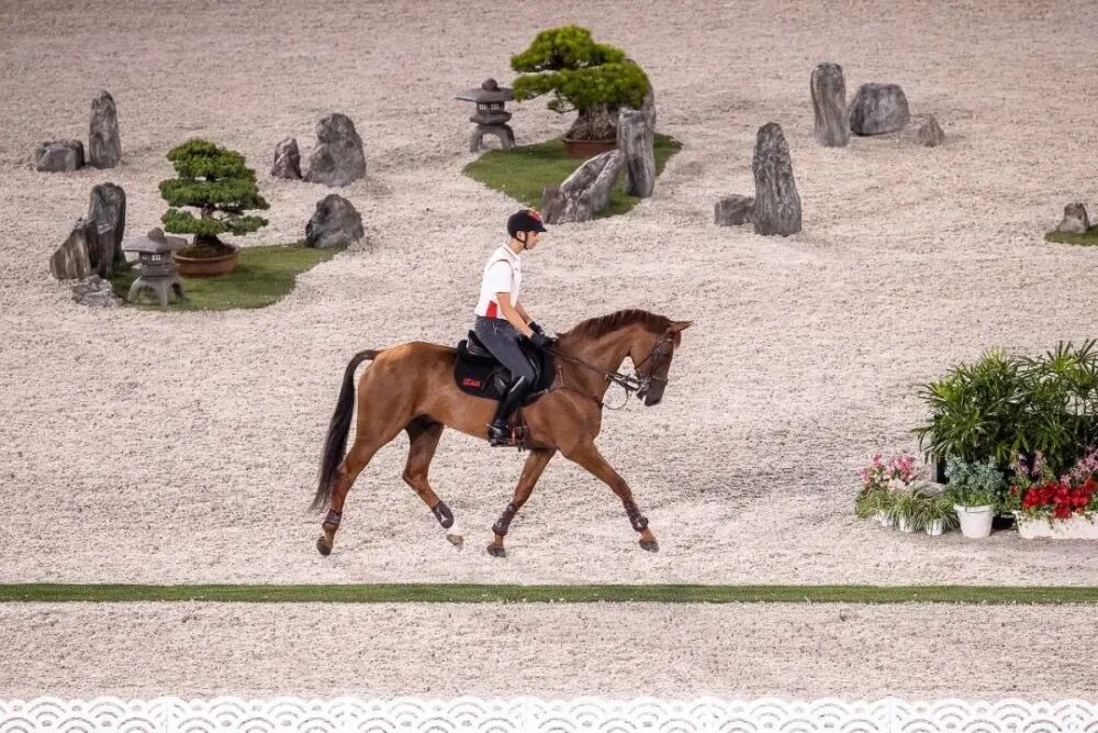 在今年的东京奥运会上,出现了日式园林美学“枯山水”般的一幕——这是华天被摄于东京奥运会马术三项赛第一次赛场实测,彷佛时间被按下暂停。你瞧,马术可以是激烈的运动,但可以是水墨画一般静怡的美。