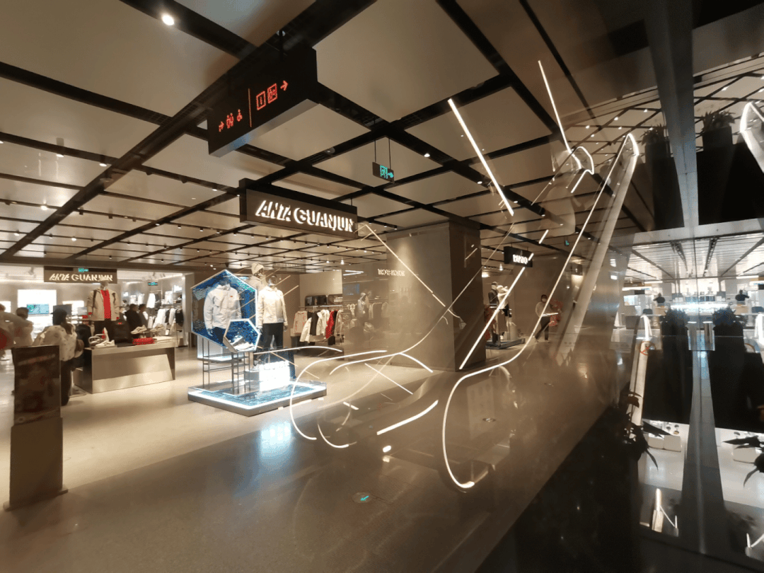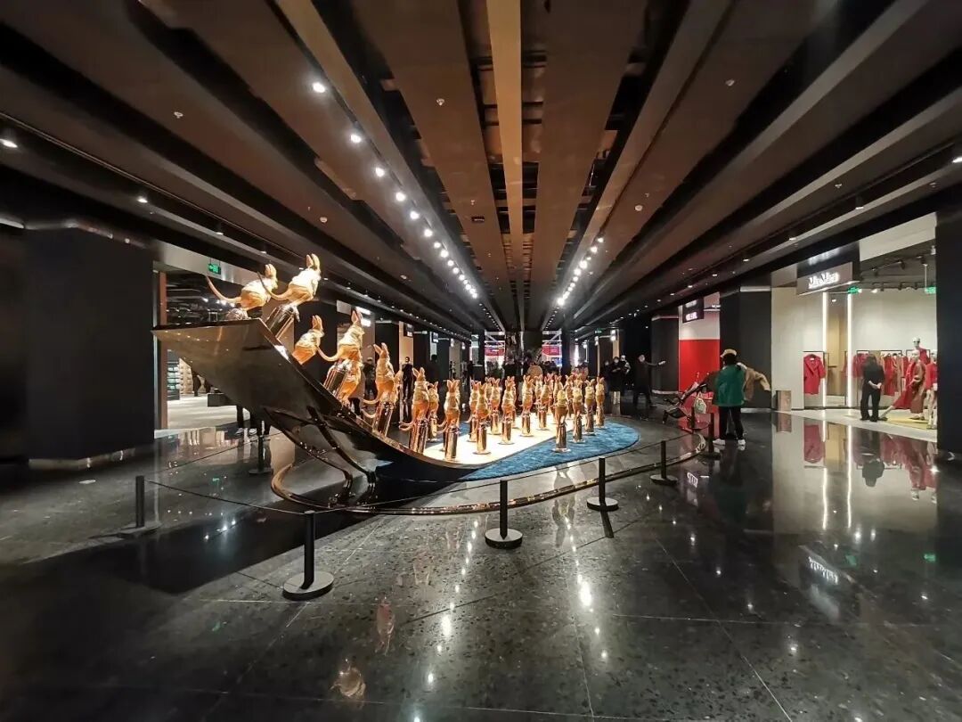更神奇的地方是,目前开放的三个出入口都有不同的感觉。仿佛每进来一次就进行了一次时空穿越。西侧的入口进来就珠光宝气的珠宝品牌,加上中间的艺术装置让人感受到潮流高端的既视感。