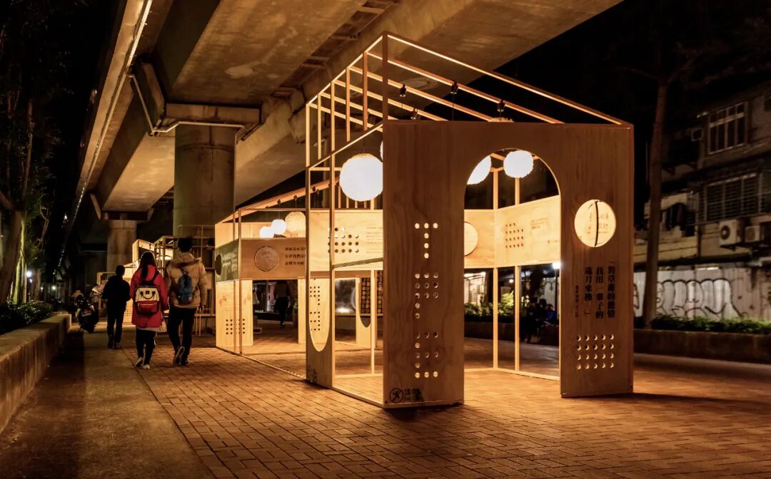 设计师以士林地区芝山岩美景出发,衍生创作了「点点相思微光装置」,更以「家」的意象为根基,在士林桥墩下的空间设计一座座的屋型框架,打造一个个开放且个别独立的展出空间,邀请周边的住户进入桥墩下,这如同大宅院一般的小区广场。