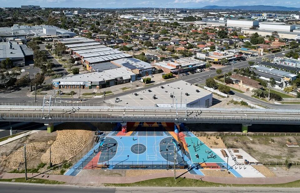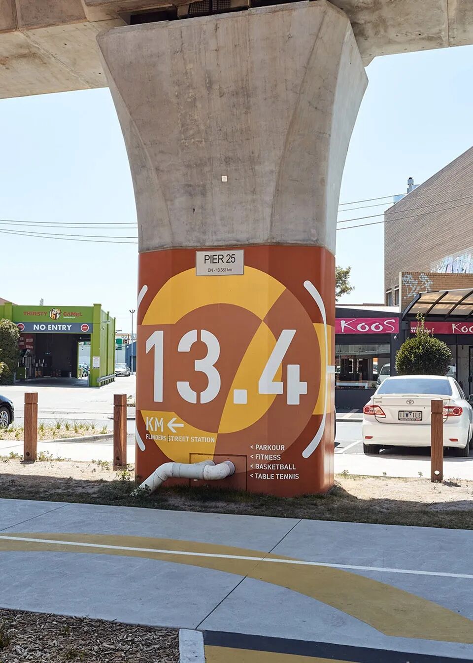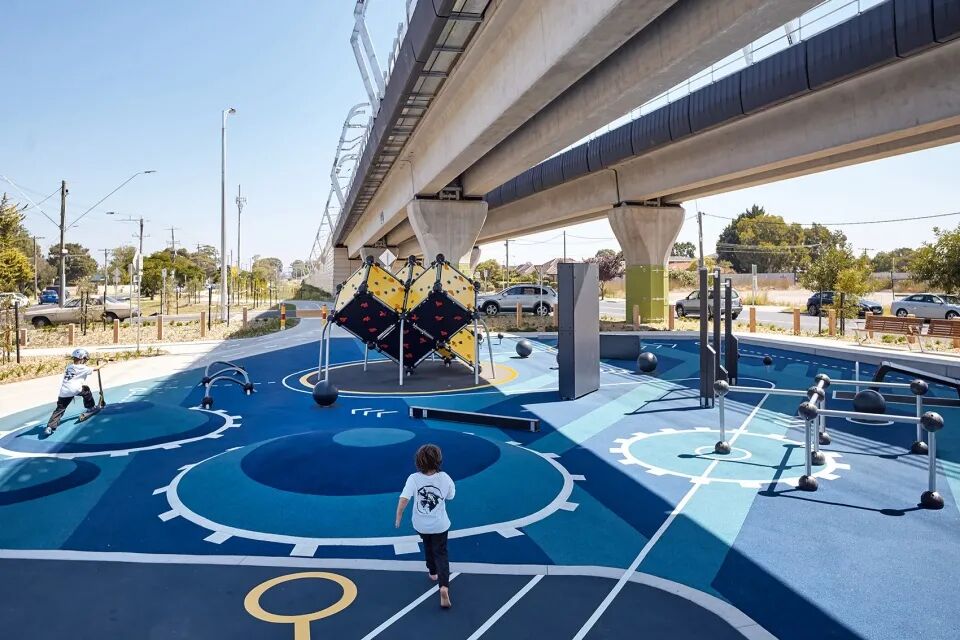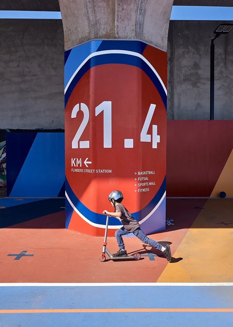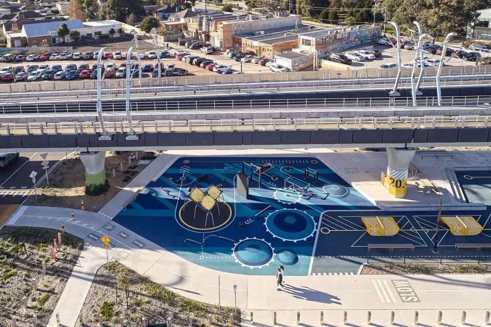 为响应维多利亚州历史上最大规模的铁路基础建设项目,设计师接受委托开启了The Underline活化项目。移除铁轨沿线的平交道口,将从前无法使用的公共区域开辟为新空间以供社区使用,因而在铁路线下形成可共享的路径网络。沿铁轨的社区活动站点提供了运动场所及娱乐设施,是一处独特的、生气蓬勃的和具有高度可识别性的空间。