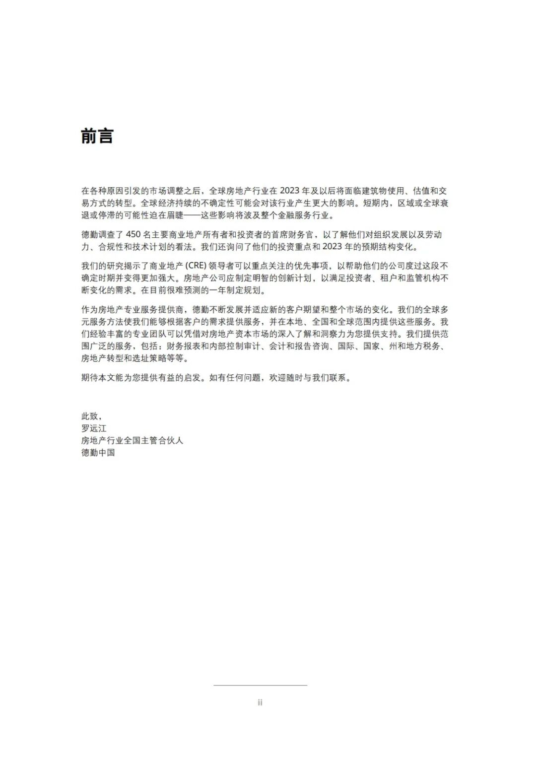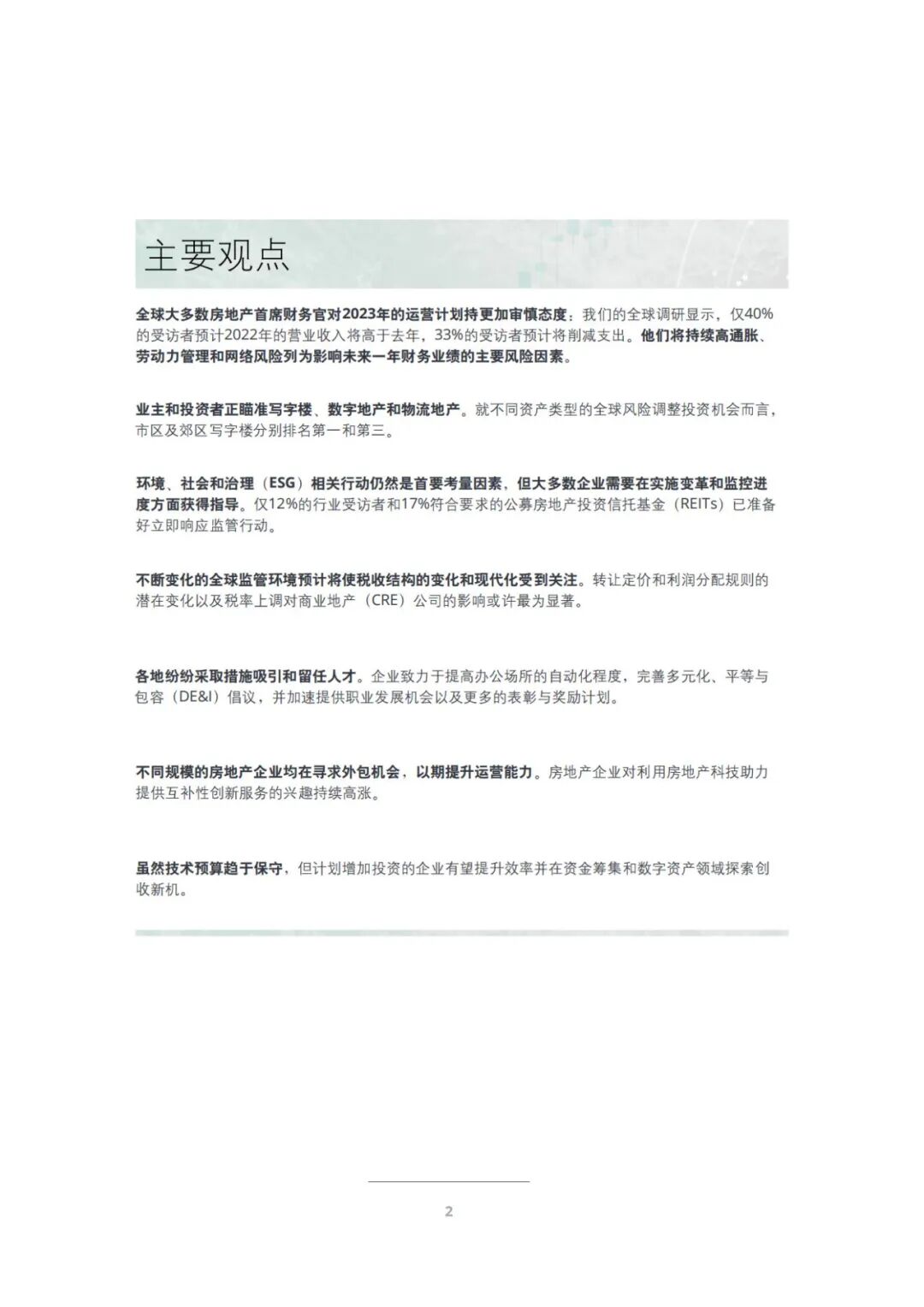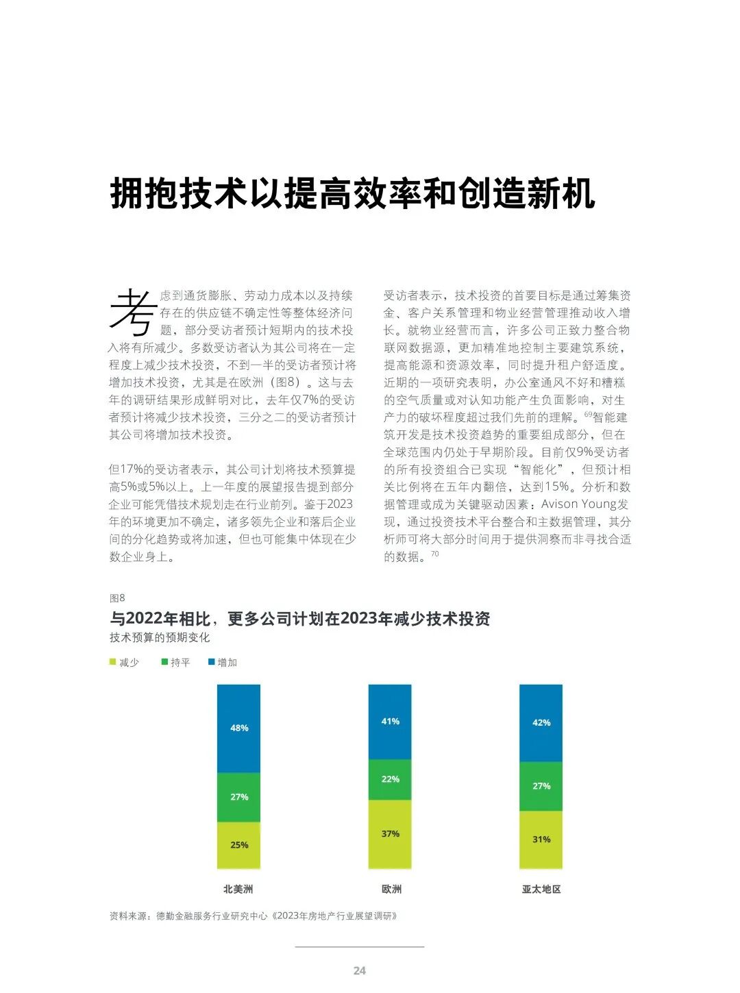 德勤6日发布《2023年商业地产行业展望》报告表示,伴随疫情等原因引发的市场调整,全球商业地产行业面临不确定性,受访房地产领域企业首席财务官对明年运营计划持更加审慎态度。