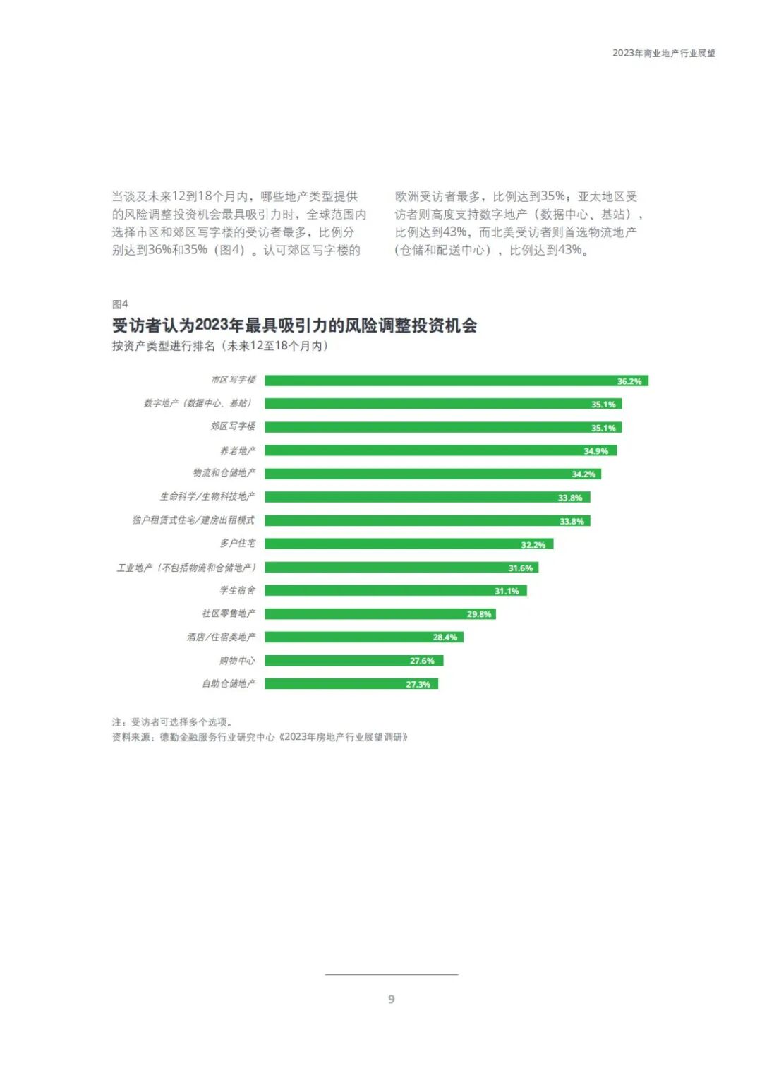 不确定性之下,商业地产投资前景如何?根据报告,在房地产行业基本面指标方面,如资本成本、资金可得性、房地产价格、空置率、租赁活动、交易活动、租金水平,大部分受访者(66%)预计明年情况将有所改善或稳定。