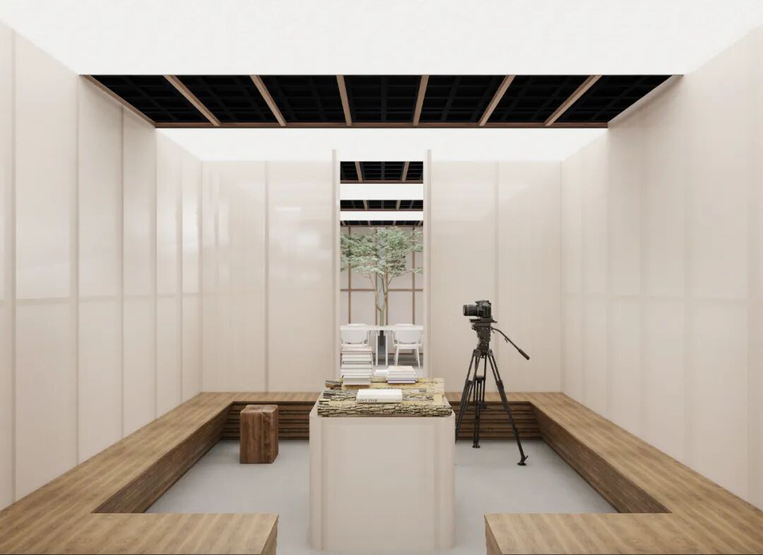 2021青春书局特邀设计师吴家春,打破千篇一律的展陈方式,创造一个媒介互动的新主题展览,集合了书店、商店、学堂、茶室、媒体直播间、工作间等多元功能,试图用复合文化功能塑造新空间语境。