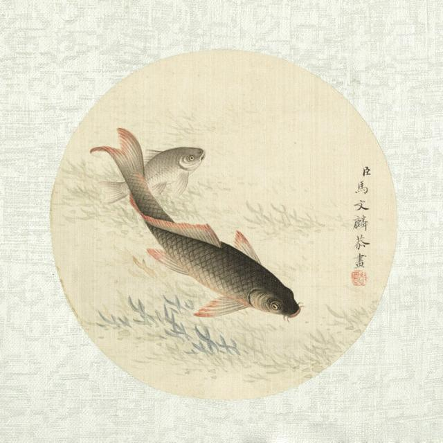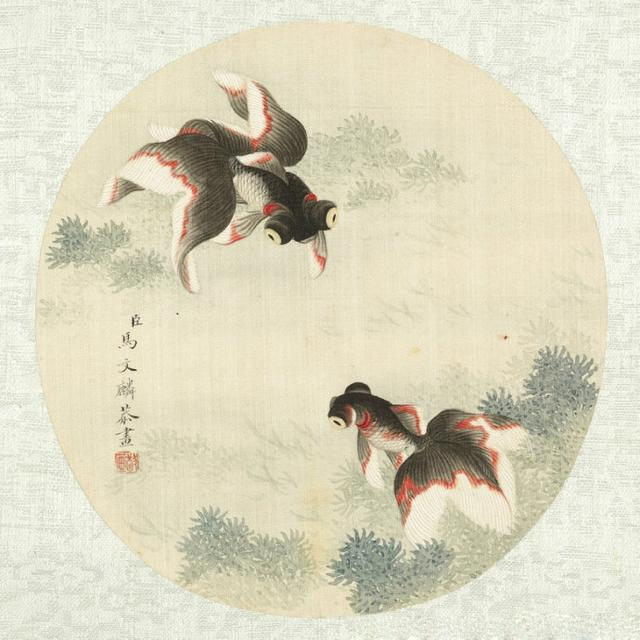 作者清代马文麟。此册绘鲫、鲤与各色金鱼悠然栖止水草间,生动和谐的自然情趣。