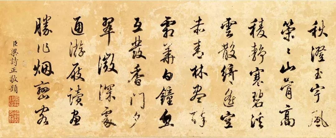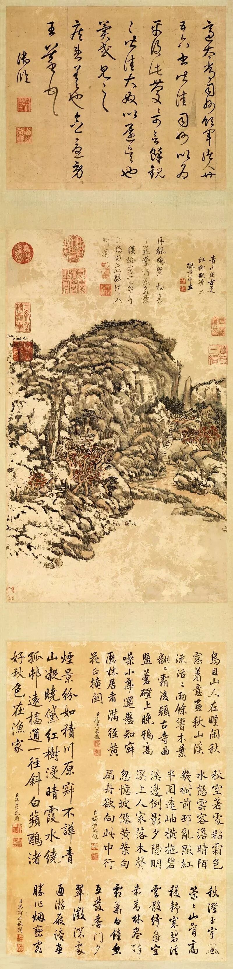 作品集2023-06-28 清代一幅山水軸,罕见有乾隆草书题跋! 清代著名画家王原祁有一幅畫山水軸,上面罕见乾隆草书题跋,水平和行书一样中规中矩。但是,没有对比就没有伤害,下方还有四臣书法其实更精彩! ▲清代王原祁畫山水軸,尺寸: 257.5x57厘米,台北故宫博物院藏。 ▲乾隆御笔临草 ▲王原祁山水画 ▲蒋溥行书题跋 ▲嵇璜书法题跋 ▲汪由敦书法题跋 ▲梁诗正书法题跋 本文来自微信公众号“艺术台”(ID:cnartist)。大作社经授权转载,该文观点仅代表作者本人,大作社平台仅提供信息存储空间服务。 TAGS: 书法山水画清代 相关文章Kleoniki Andr…这是大王Day.281获奖作品《2020最佳图书…精选头像|搞怪来袭!安东尼奥·布埃诺 作品配色清新梦幻的场景插画,充…美国Jennifer Mc…【小鹏设计】设计小改/动力…【首发】地点空间丨打破空间…谢商家不坑之恩!只骗有钱人…