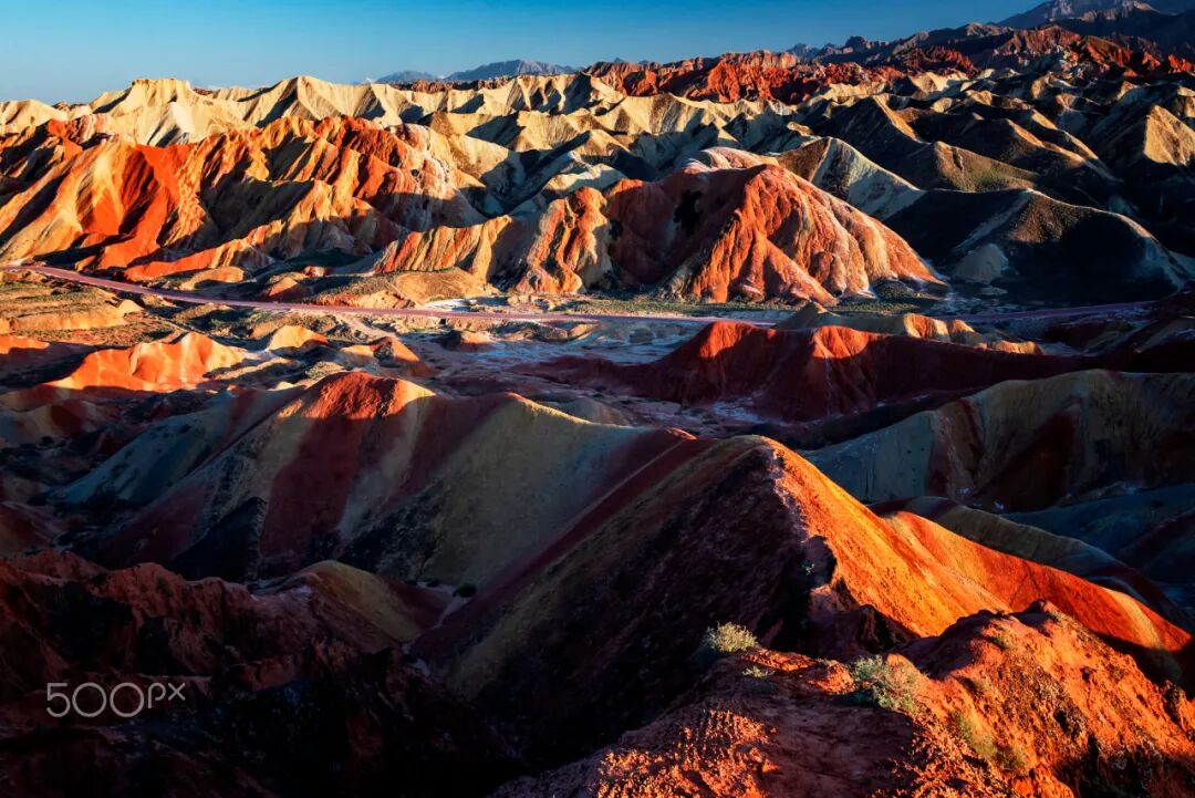 赤红、浅白、嫩黄、深褐的色带交错,平行排列着呈现,成为西北荒芜天地间一片难得绚烂。