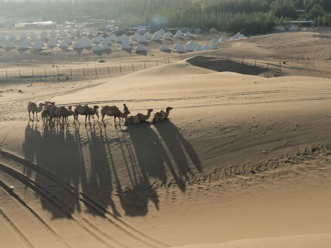 我和同伴吐槽,在海岛没玩够沙子,跑到千里之外的大西北爬沙子山。