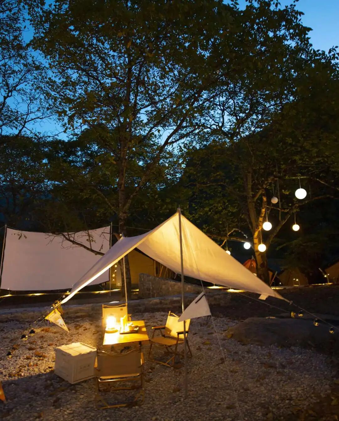 The client’s intention was to set up campsites and new service facilities near the park’s entrance, allowing visitors to remain close to nature whilst residing in the forest. The architect's strategy was simple: to minimize interference with nature by using retractable tents – alternatingly placed along the stream, so each tenant can enjoy a view to the water as they drift into sleep. Moreover, the architect restrained the extent of intervention by only building two new pavilions elsewhere – thereby meeting the most essential needs for reception and dining.