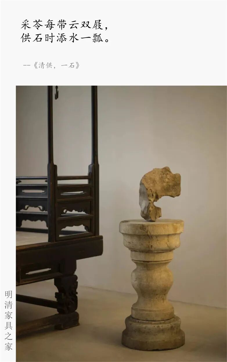 供石之置,也就是将赏石作为厅堂案几,而非园林置石。一块自然界的普通石头,入室登堂,演变成为一个承载人文审美的艺术角色,其原因并非地理矿产的稀有和物质元素的珍贵,而正是由于作为欣赏者的人,赋予了这些没有生命的石头具有人的灵魂与情感。
