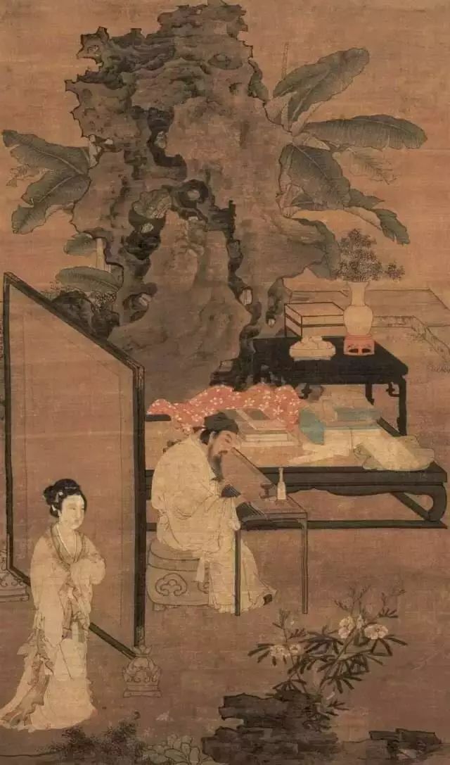 宋·苏汉臣《妆靓仕女图》几案上皆有花器/盆景