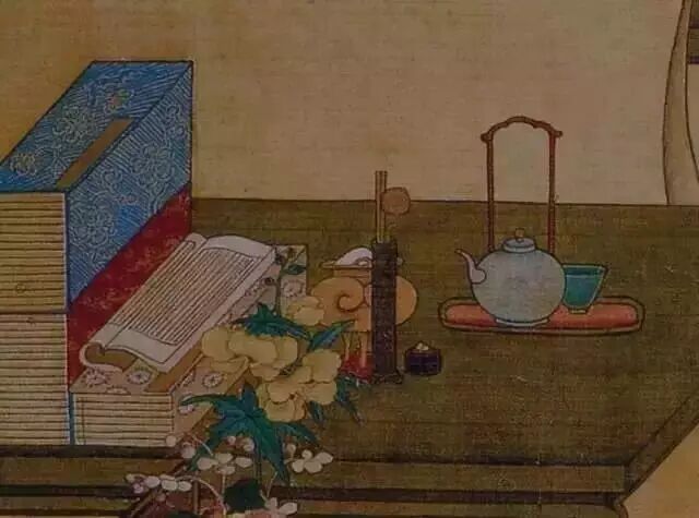 清《雍正妃行乐图》中桌案上的花器/香炉