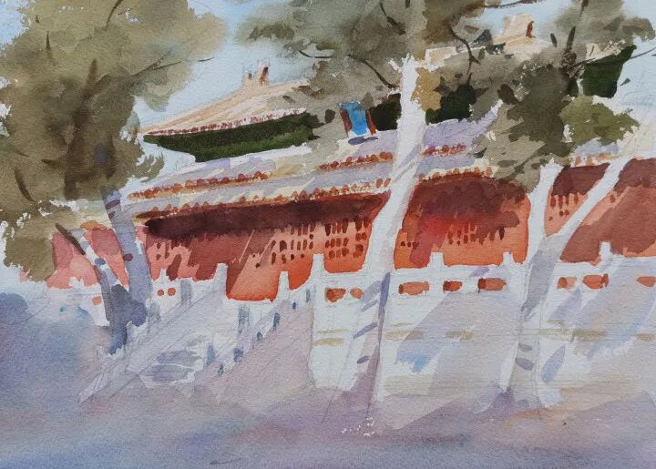 他笔下这84张传统古村落写生作品,张张值得细品