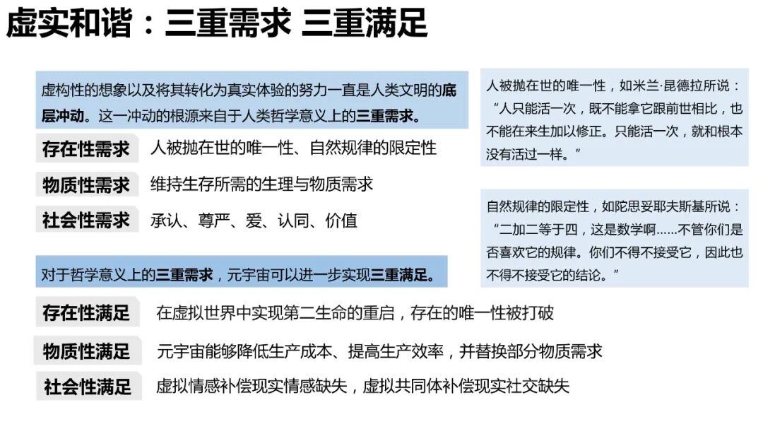 思想实践拓展:元宇宙之前,探索宇宙是人类的主要目标。元宇宙的出现拓展了人类的思想实践。创建宇宙和探索宇宙变得同等重要,两者是相辅相成的。个体的思想实践也趋向于“两栖化”。