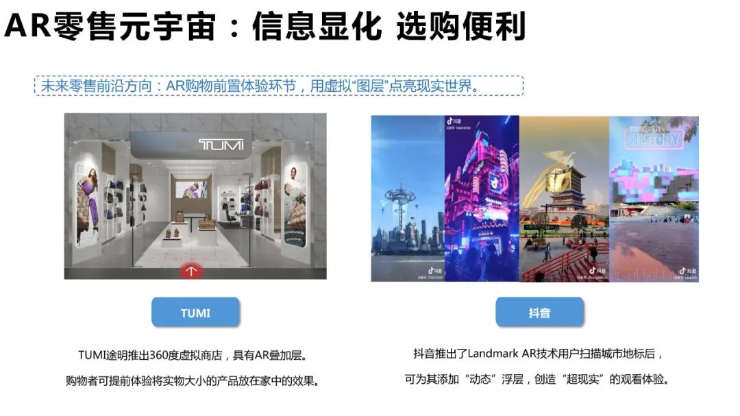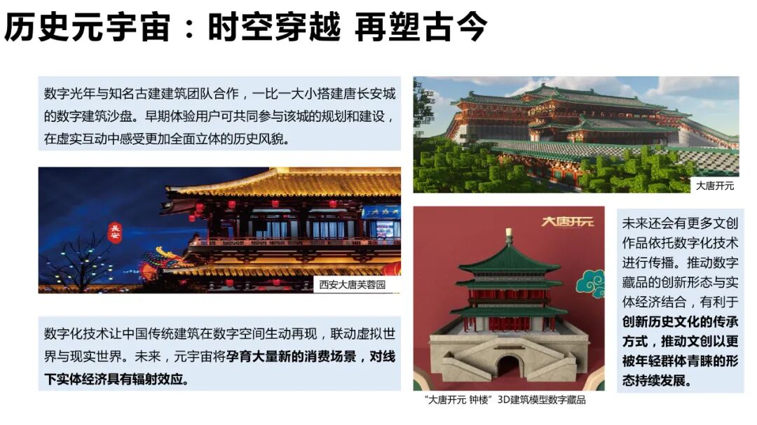 体验:各大互联网公司、媒体、研究机构将逐步建立元宇宙体验点,来访者能够亲身体验虚拟现实设备、驱动数字虚拟人、建立对元宇宙的感性认识。此外,一些知名品牌在虚拟平台打造旗舰店,带来集游戏、创作、定制、消费为一体的虚实联动体验。