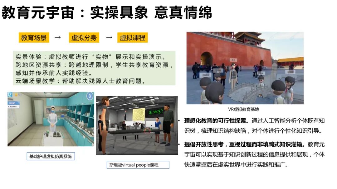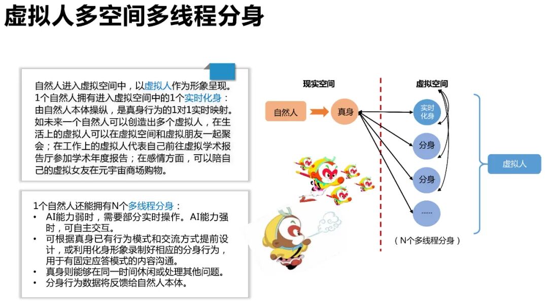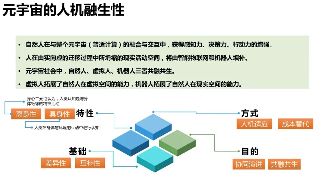 虚实联动:通过人工智能引擎支撑高仿人机器人和虚拟人,并与现实世界中的自然人进行交互。同时,场景和资产也构成广泛的虚实联动。