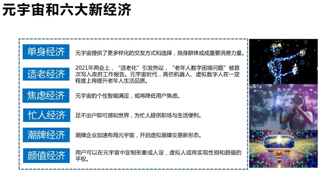 02、适老经济:2021年两会上,“适老化”引发热议,“老年人数字困境问题”被首次写入政府工作报告。元宇宙时代,高仿机器人、虚拟数字人在一定程度上将提升老年人生活品质。