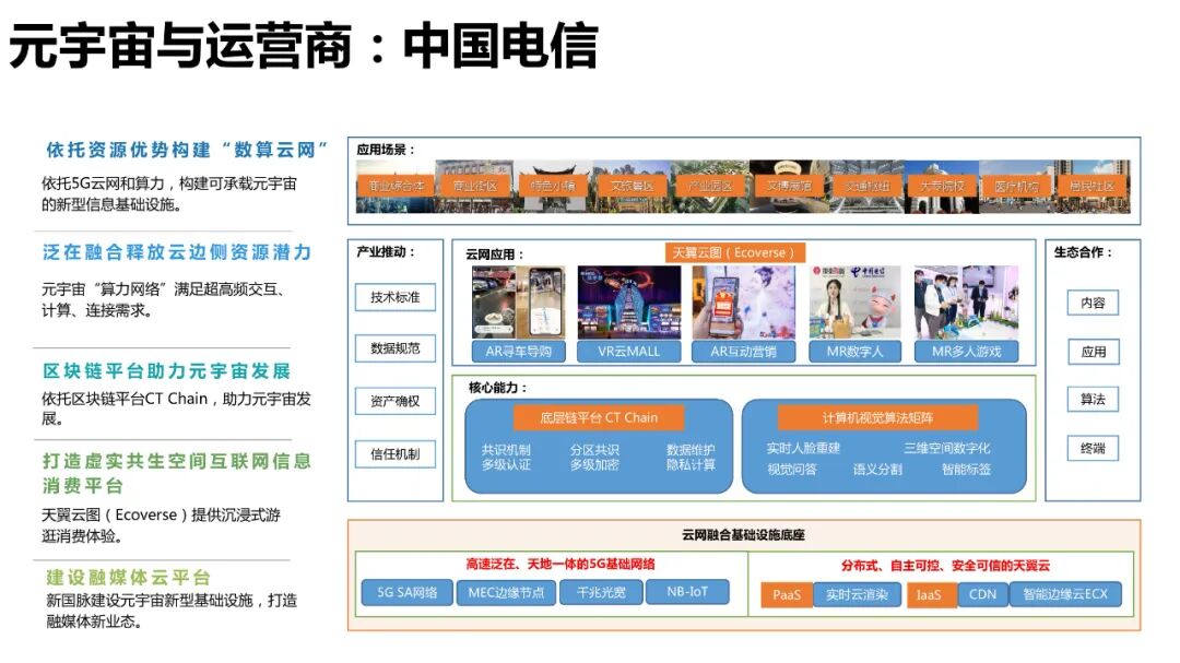 基础设施:5G/6G网络体系架构、自主芯片设计、云计算+边缘计算、AI赋能中心、工业互联网平台、区块链引擎、游戏引擎。