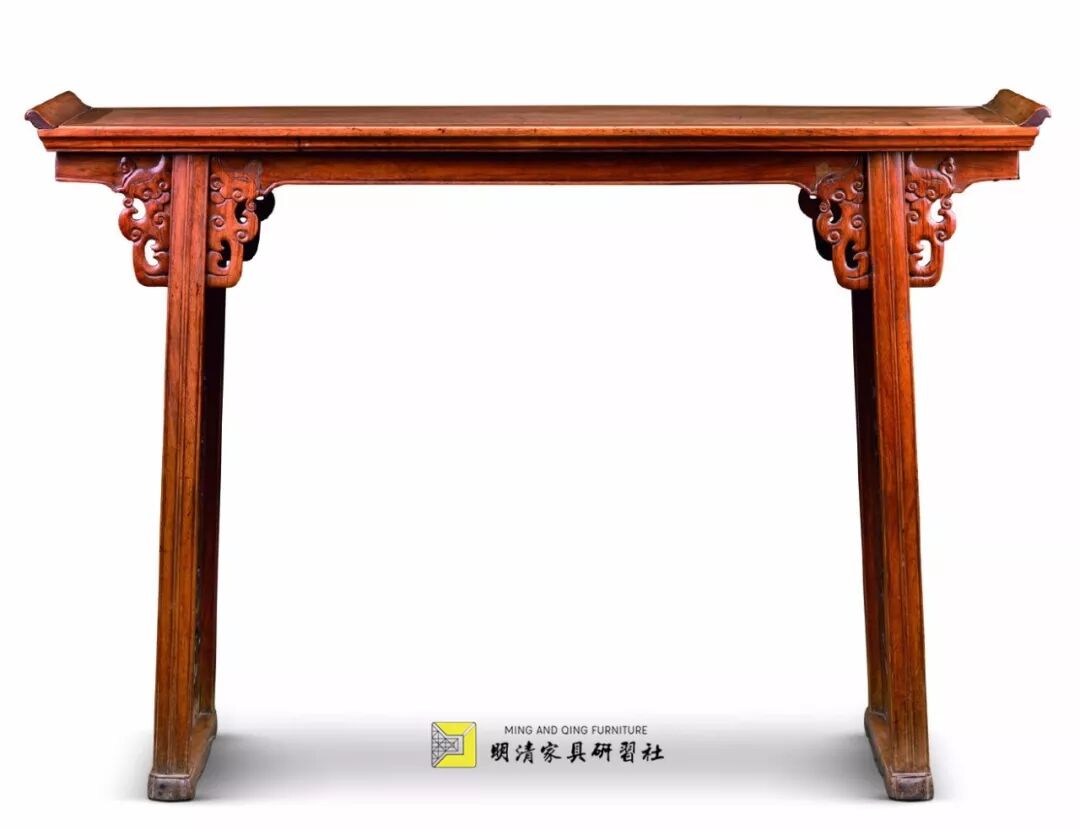 与一般平头案相比,主要构件集中在上部,四足平竖直伸,光洁简练,尤显挺拔俏丽。