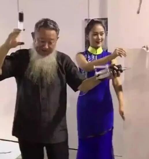 几个漂亮姑娘扯开一长幅白纸,号称“清华大学当代艺术专业特聘专家,清华大学美术学院外聘教授”的大胡子艺术家邵岩,手持打针用的“注射器”,移形换步,跟太极宗师似的耍了几下,然后一溜小跑,一通狂喷,周围几个傻X嗷嗷叫好。