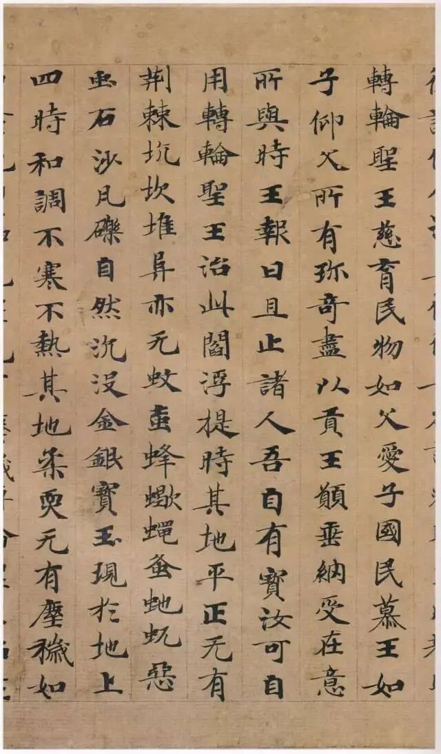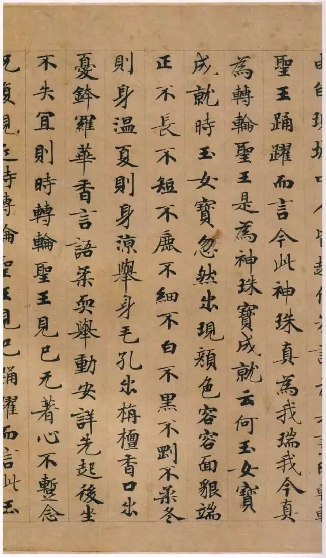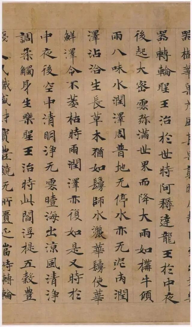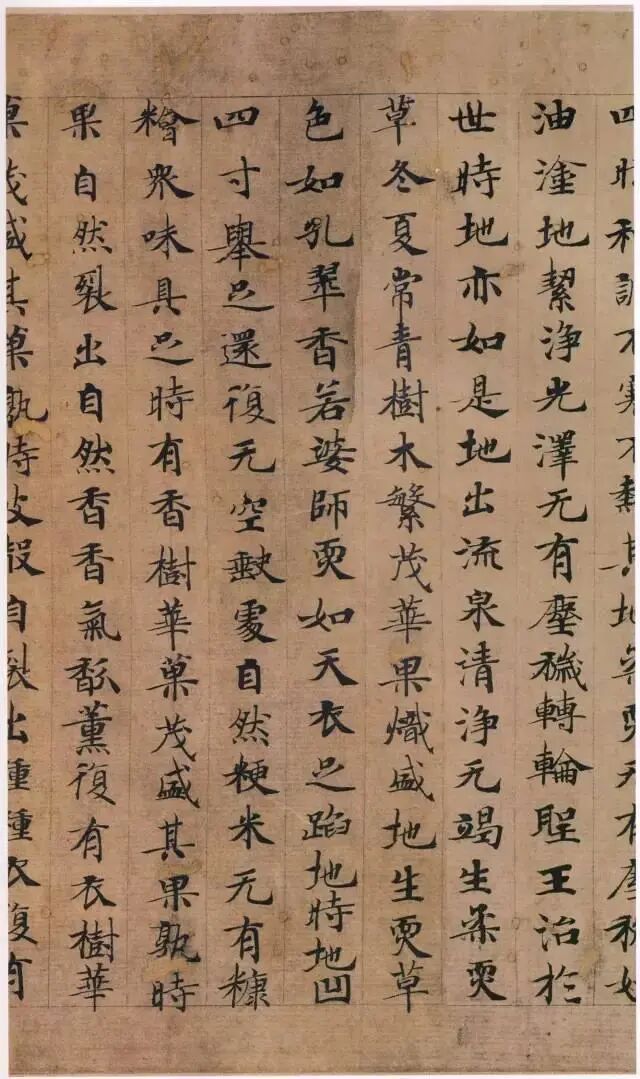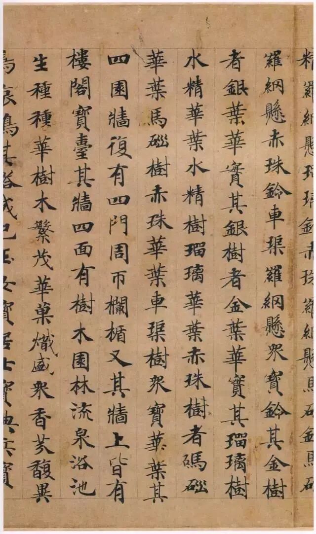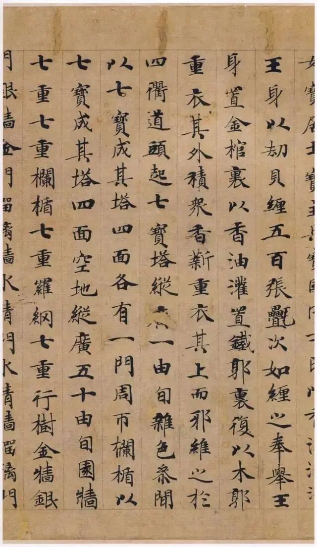 自从佛教传入中土以后,写经书法应运 而生,以至于成为除壁画、造像艺术之外又一 绚丽夺目的宗教文化胜景。钟绍京此作是抄经体之巅峰之作。