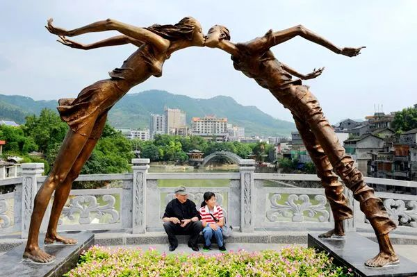 “爱桥”上的雕塑(图源:公众号“新吉首”)
