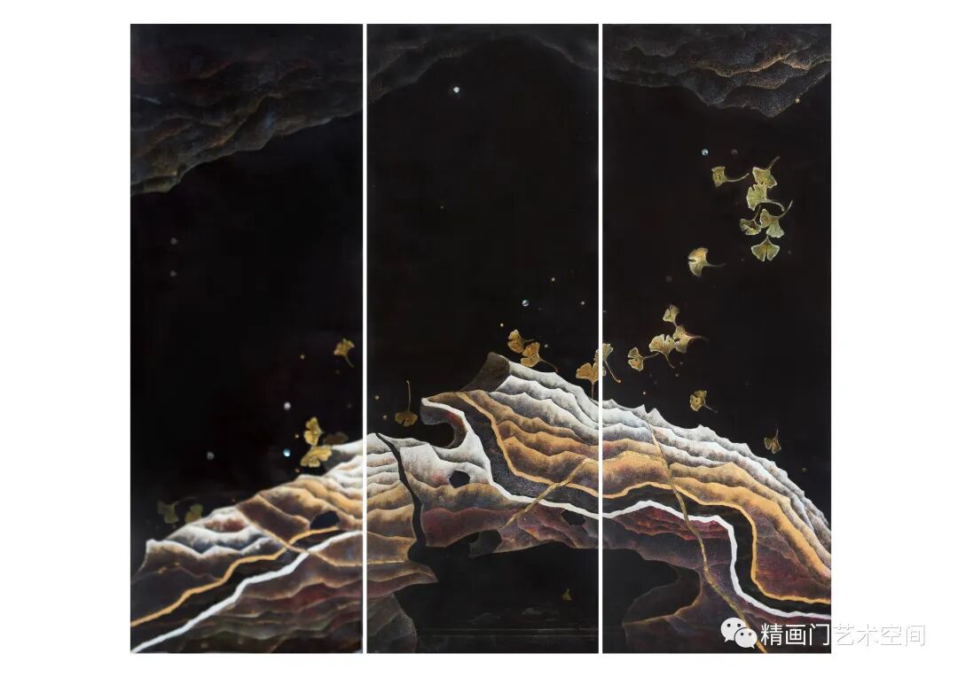 2015年漆画作品《印象-看不见的山》《印象-看不见的水》 首届白云漆艺术作品展;