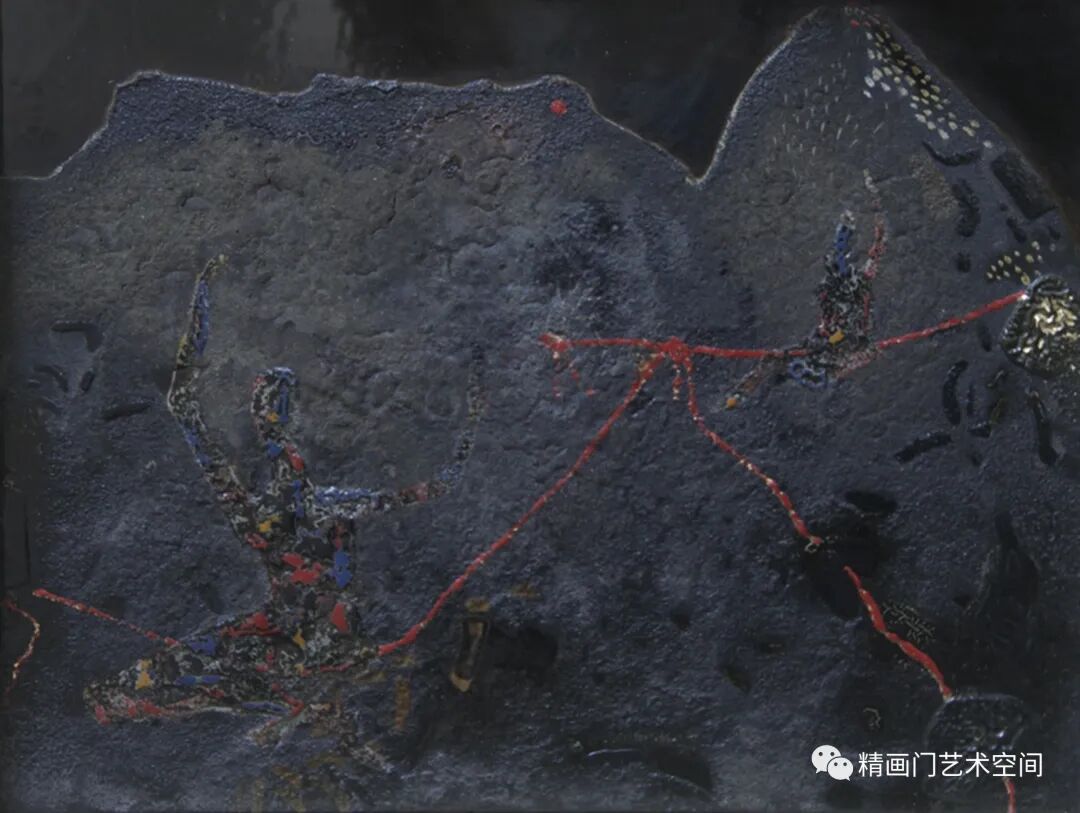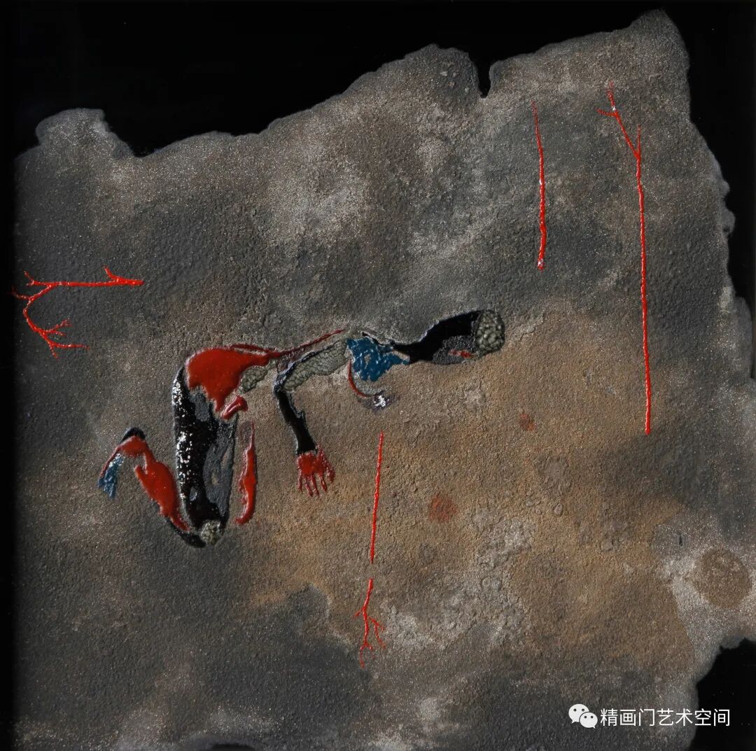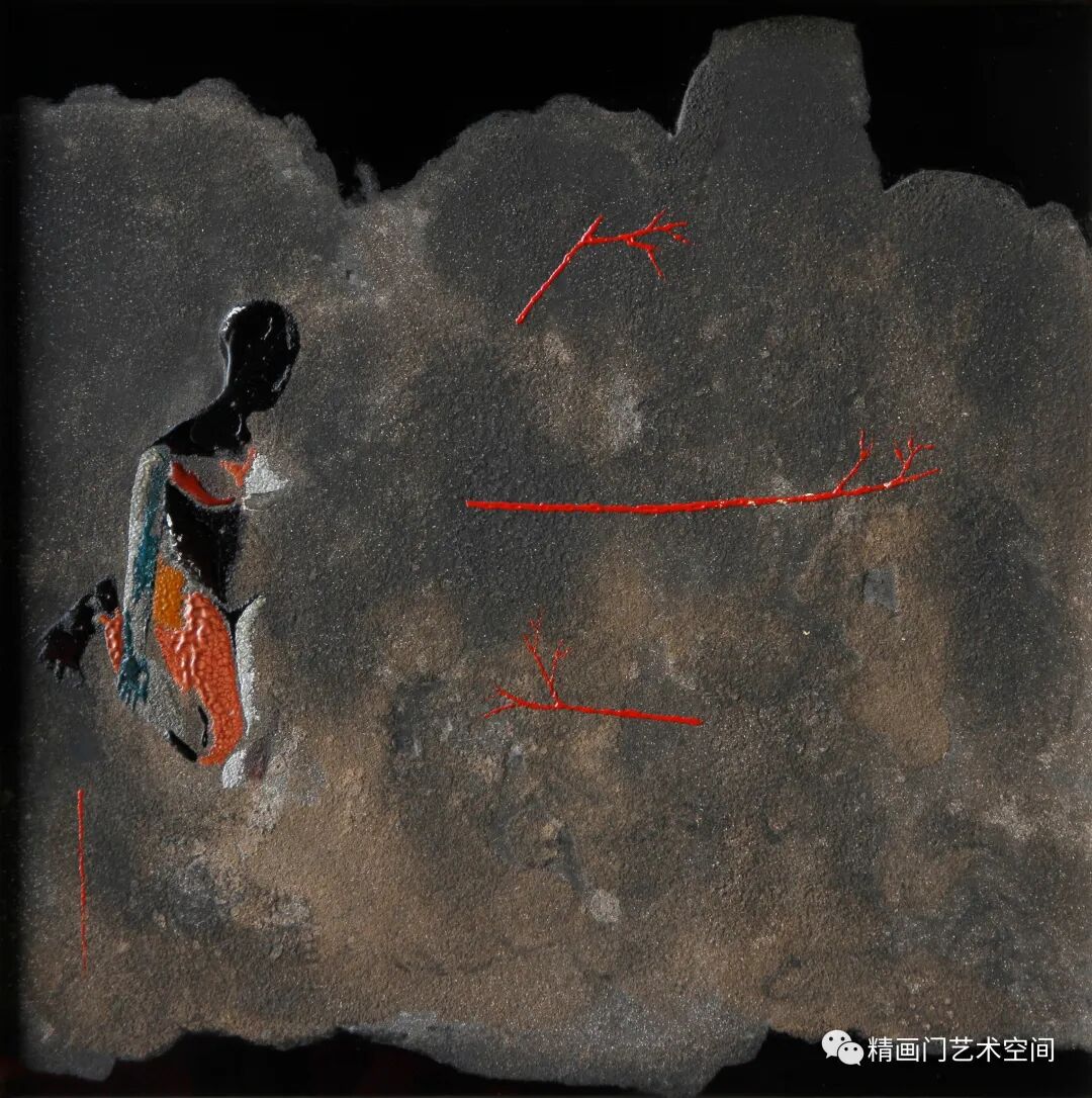 大山里的近似虚无的物体,形成若隐若现的效果,让诸多主体元素找到适合自己的位置。隐性地让主体元素之间相互渗透融化,粘织在一起。这么近似完美的效果也就只有漆性这个媒介才能行使职能,发挥其的长处特性、平淌性、粘稠性、包容性。这种变化,有时是具象,有时是抽象的,能够使我们在感官上产生丰富的联想。也能感受到漆材的优势和魅力所在,会直接打破人们固有的思维定势。创作过程也是游戏的过程。