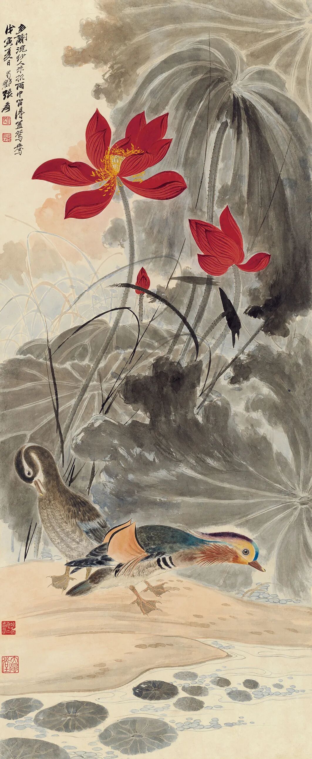 今天是情人节,让我们来欣赏一组写意鸳鸯图,感受一下国画里的浪漫气息!