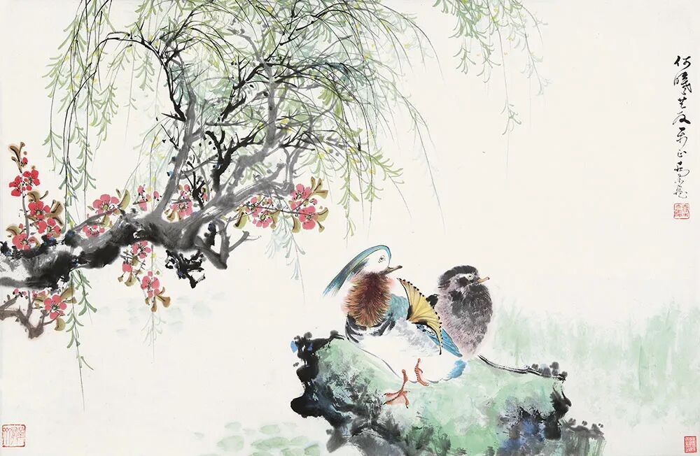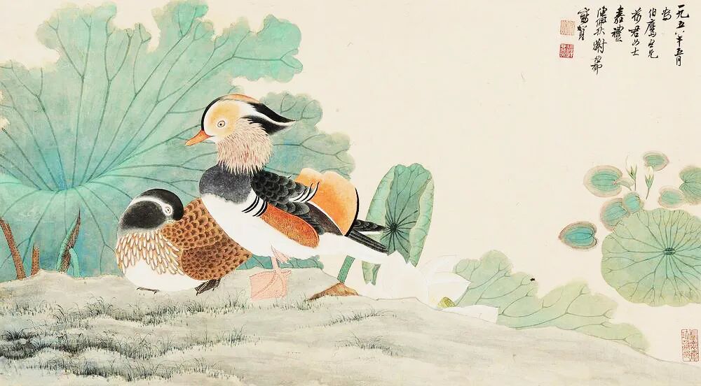 历代画家也以鸳鸯为主题创作了不少经典的绘画作品,画中的鸳和鸯都是出双入对,或在池塘溪水,或在树下闲憩。无忧无虑,快活无比,真是羡煞旁人!