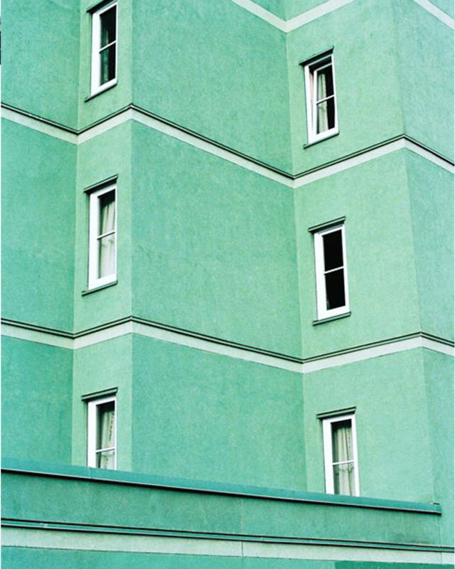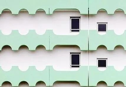 在建筑、构筑物的外观装饰上,青色是很罕见的色彩,不管现代建筑还是古典建筑外立面,都可以用青色都会用作为点缀,局部使用烘托氛围。