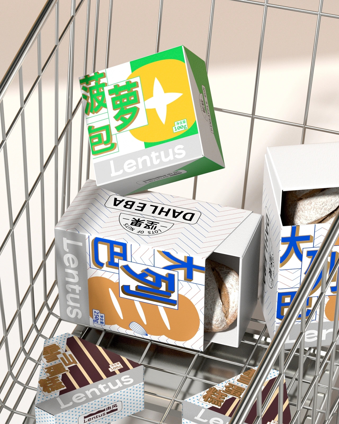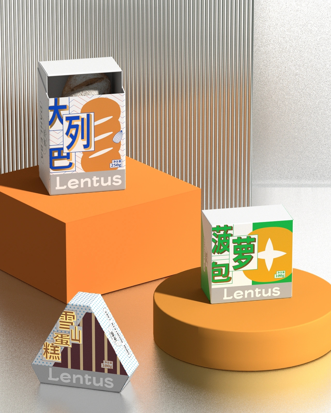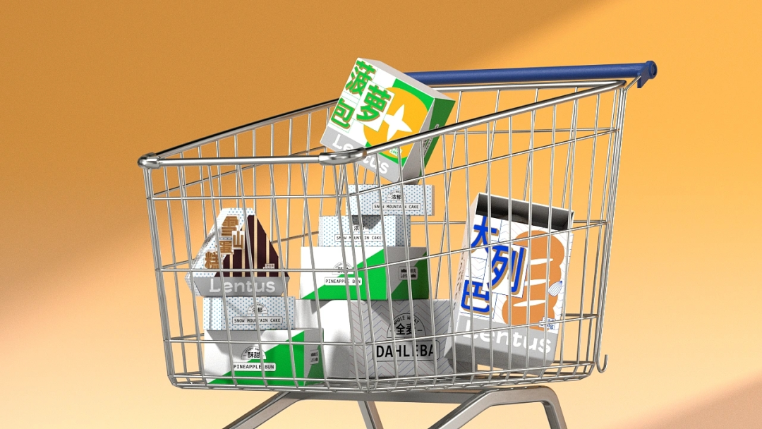 盒面附上几何图形描绘的蛋糕外观