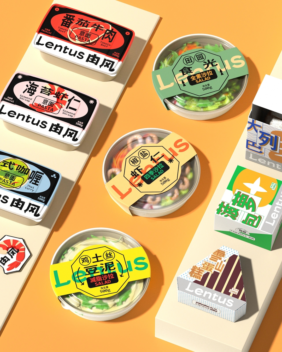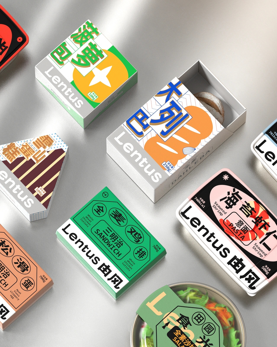 传统印象中的轻食包装多以简单、极简为主