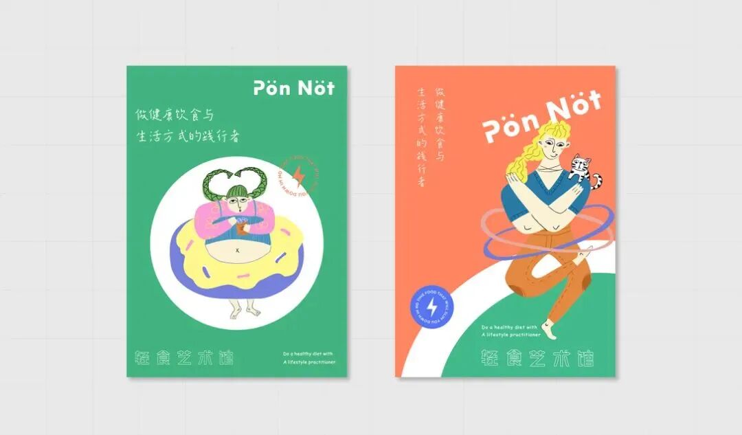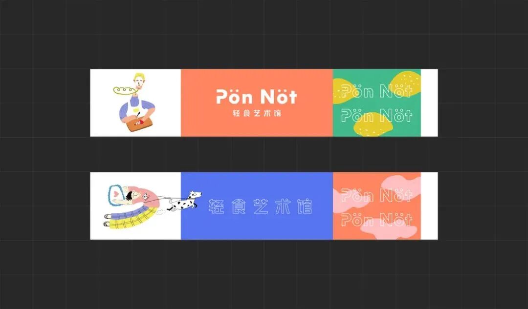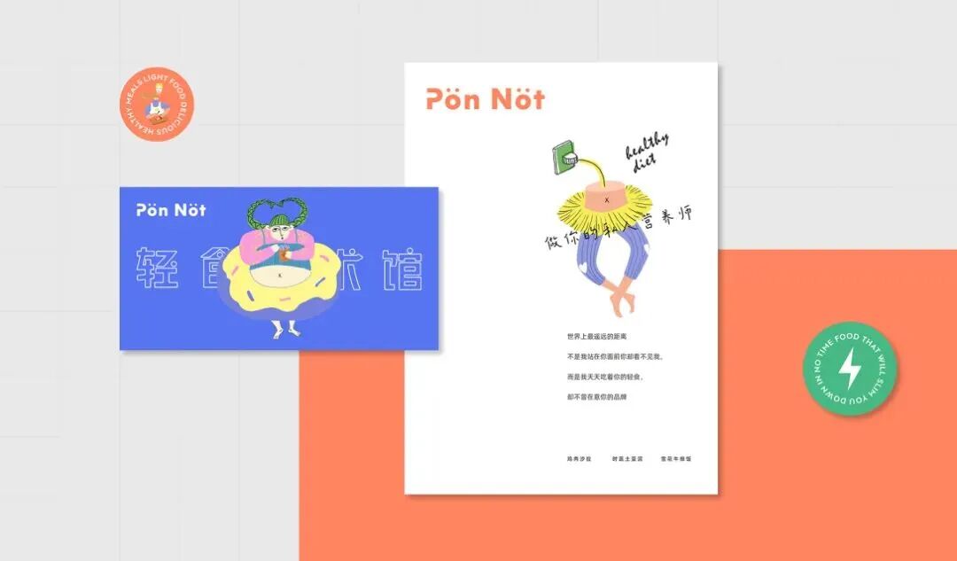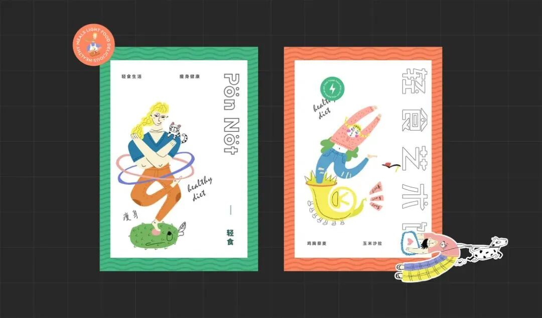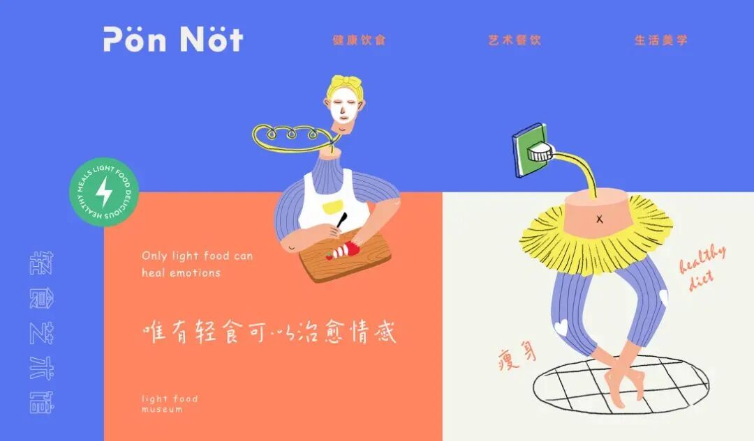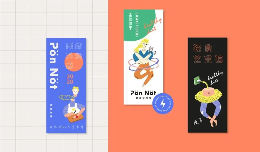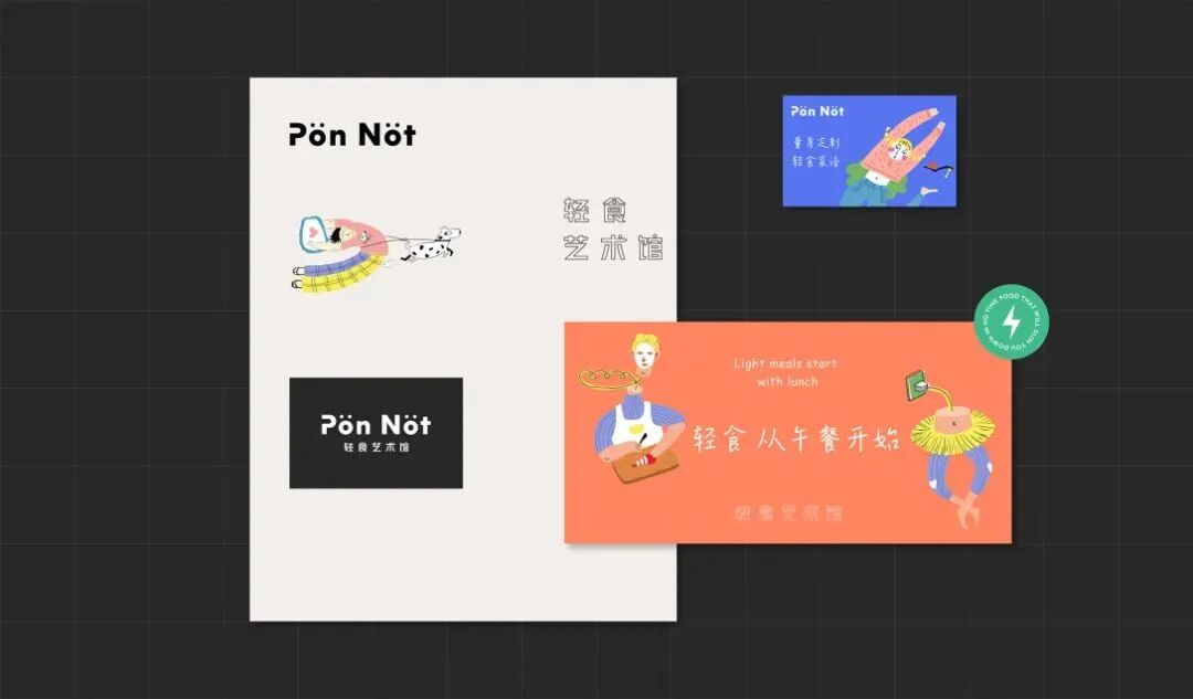 轻食艺术馆的品牌VI及包装设计,用斑斓的色调搭配趣味画风,巧妙地将健康饮食与生活美学结合起来,打造新式的艺术餐饮,提醒你在养生的同时,也别忘了精致。