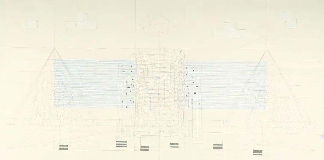 凌海鹏:我这次的参展作品大体分为三个创作时期。《是与不是之间•云》是早期的毕业创作之一,现在看去,里边所有东西也并没什么不同。“生命的重量在画面中自下而上随着时间轴的方向一圈圈地螺旋升空,通向那顶端象征理想的云的结构,每兜一圈的过程我想自己也并未和原来的我重合,而是于每个弯折处多了一个数、含了一点悟……”,依然是这些内容。时隔七年再看去也没增没减,她定格在了那里,我在继续前行,只是当初的那种慌张和寻望就是青春吧。