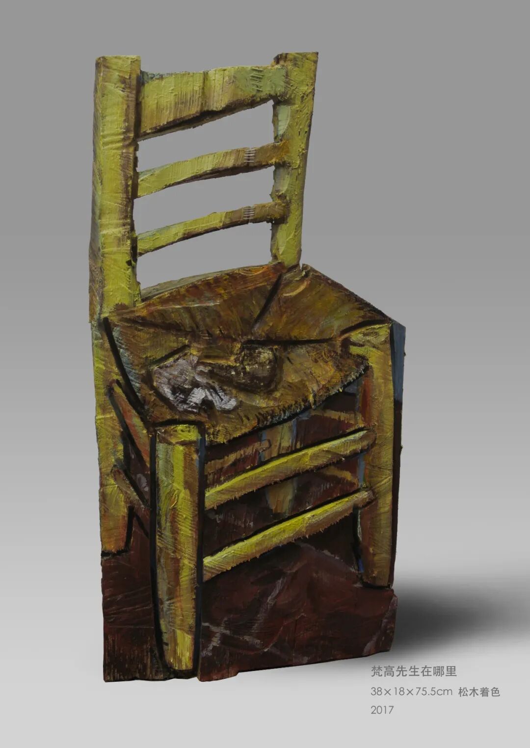 孙鹏《梵高先生在哪里》,75×18×38cm,松木着色,2017