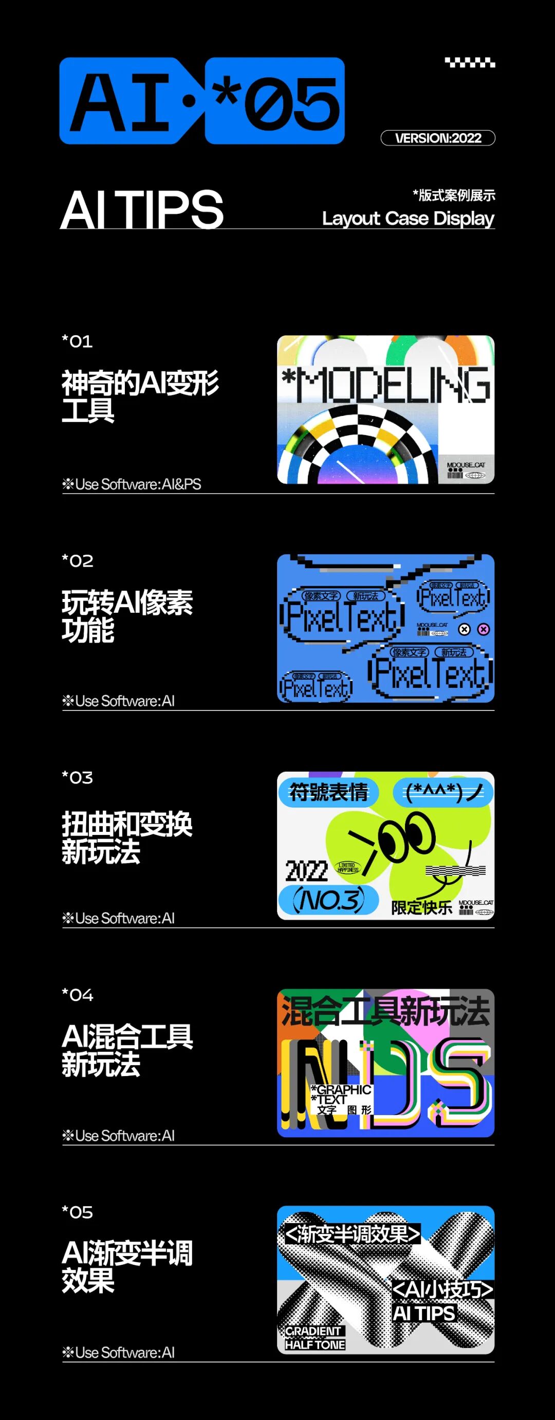 干货2024-01-23 轻松学会5个AI小技法~ 哈喽,大家晚上好呀,又到了版式教程的时间了,今天给大家带来的是5个Ai小技法,简单又实用,看完记得去操作练习一下,多的不说,咱就直接开始整活了。 ● 内容呈现 NO.1 神奇的Ai变形工具 NO.2 玩转Ai像素功能 NO.3 扭曲和变换新玩法 NO.4 Ai混合工具新玩法 NO.5 Ai渐变半调效果 本次教程就到这里了,希望对你有所启发,看完记得动手操作一下哦! 本文来自微信公众号“胡晓波工作室”(ID:ziyou-design)。大作社经授权转载,该文观点仅代表作者本人,大作社平台仅提供信息存储空间服务。 TAGS: AI工具教程 相关文章蔚来ET7白车身解析非常适合萌新练习的黑白线稿…进入《龙之家族》的世界、变…神权和王权青甘大环线|山与水如何将二维码巧妙地放进海报…平面设计的基本原则有哪些?有爱的猫咪LOGO设计教程设计选材 | 莱姆石怎么用…【工业包装#运输包装】汽车…