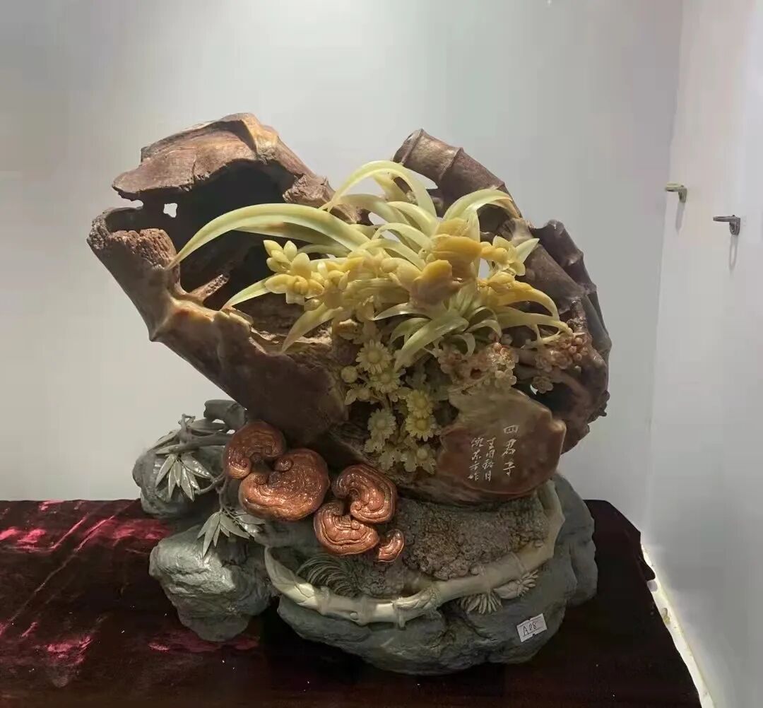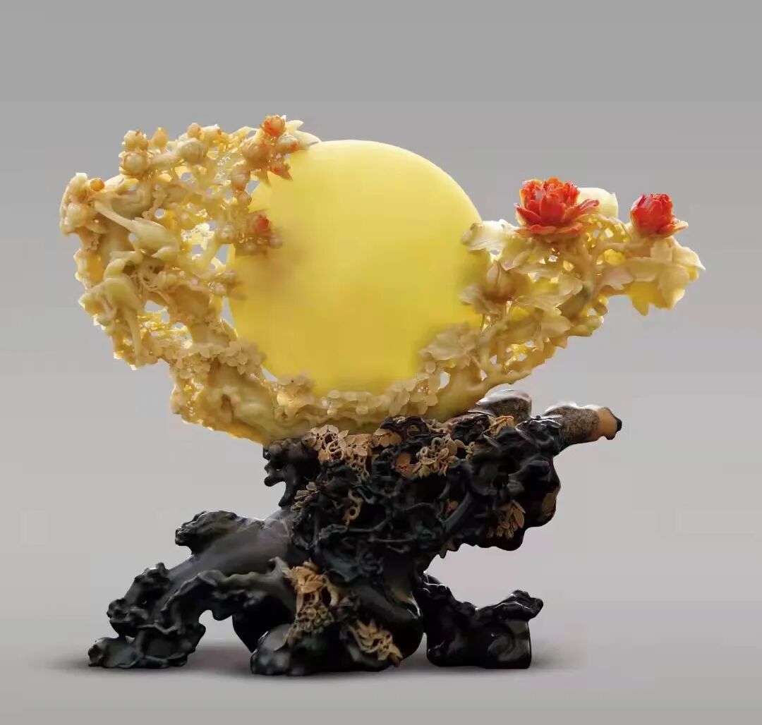 青田石雕是青田的金名片,也是中国传统石雕艺术宝库中的一颗璀璨明珠,它以精细的雕工、生动的色彩、多样化的题材闻名于世。1992年12月15日,青田石雕特种邮票正式发行,一套四枚,分别为《春》《高粱》《丰收》《花好月圆》,向世人全面展现了青田石雕独特的艺术魅力。其中《花好月圆》就是倪东方的代表作之一,运用了圆雕、镂雕、浮雕等多种手段,花了近八个月的时间才完成,而他选择花好月圆的元宵节即将来临之际离去,是为了永远的花好月圆!