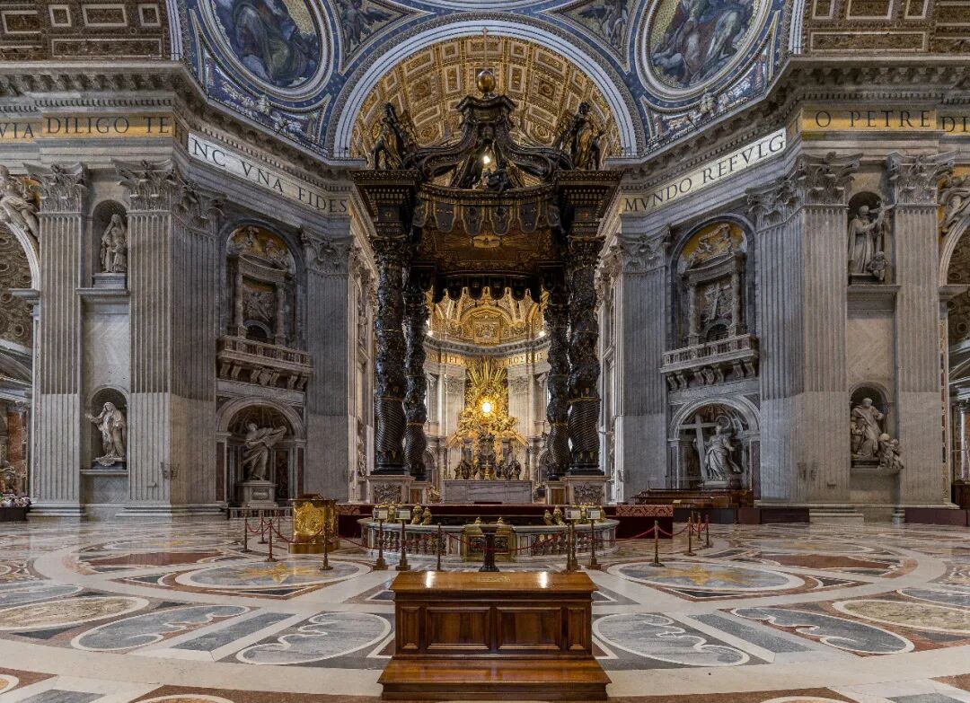 每天两分钟,赏雕塑,听艺术,大家好!今天给大家介绍意大利巴洛克代表艺术家之一-贝尼尼的作品《青铜华盖》,位于意大利罗马梵蒂冈圣彼得大教堂。