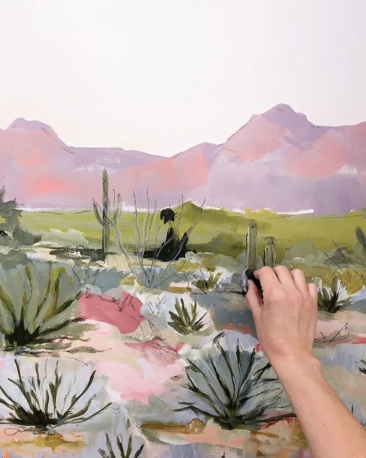 这位画家的沙漠风景画作,与我们看到许多同类题材的画家都有所不同,她的沙漠绘画给人一种清新自然的感觉,让人可以感受到沙漠空旷与包容,欣赏这些绘画作品让我们的心情也会变得好很多。