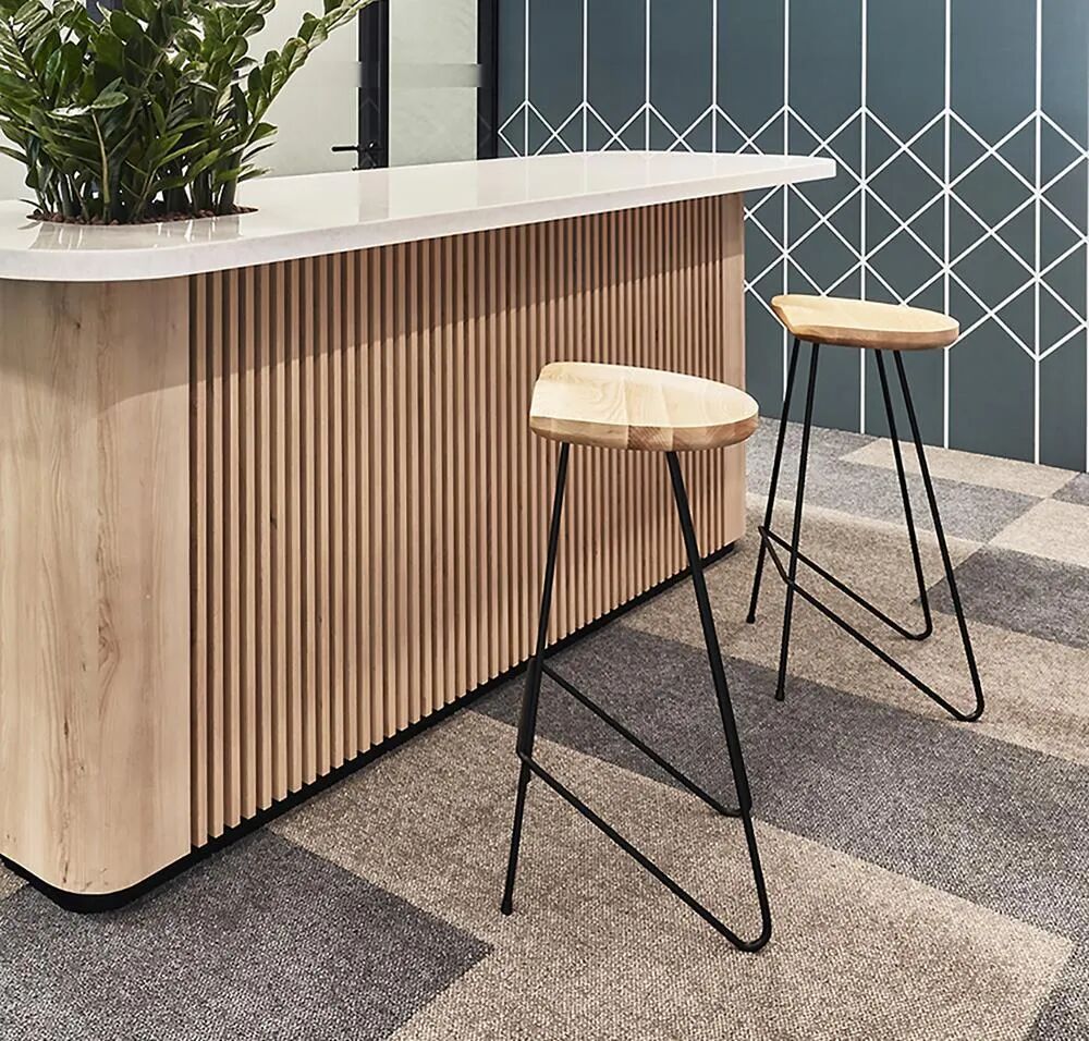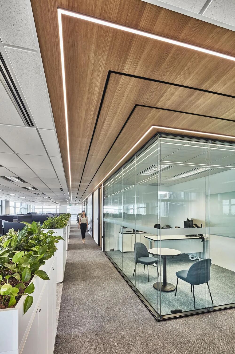 当人们抵达此处空间,首先被前厅接待区的设计所吸引。独特的天花设计来自于Revantage首字母“R”的变化演绎,构成室内令人惊叹的视觉焦点。这一元素还被创造性的应用于其它领域,如顶面声学板的立体构造,形成元素上的呼应。