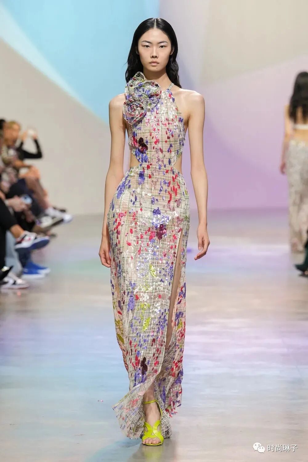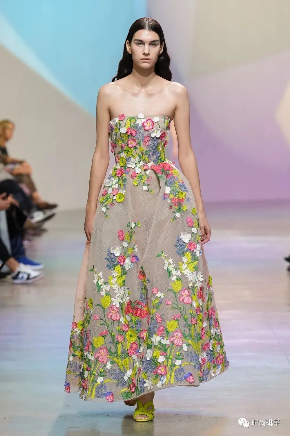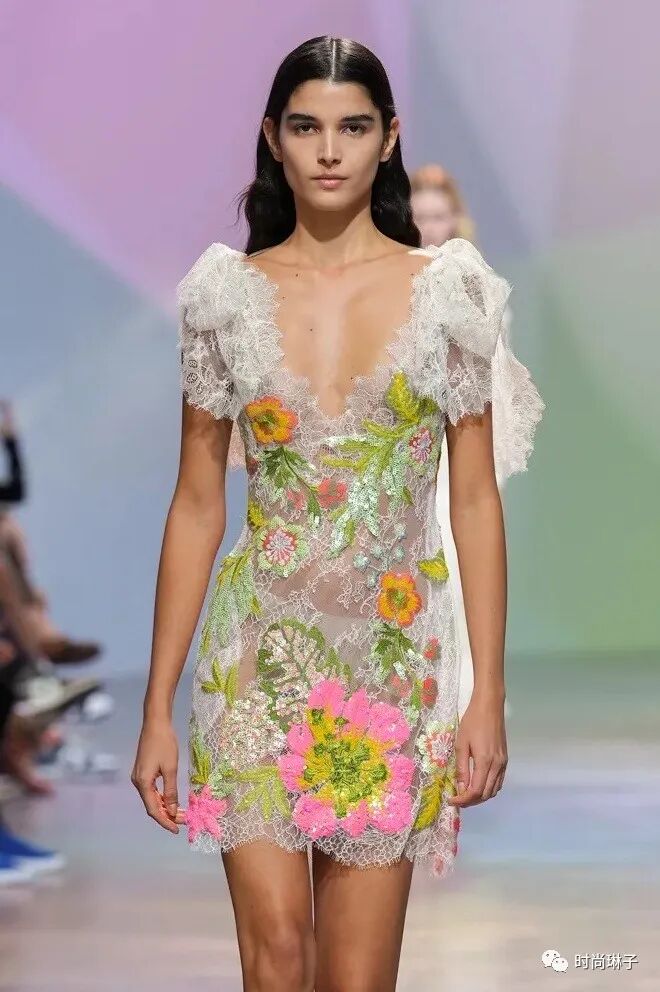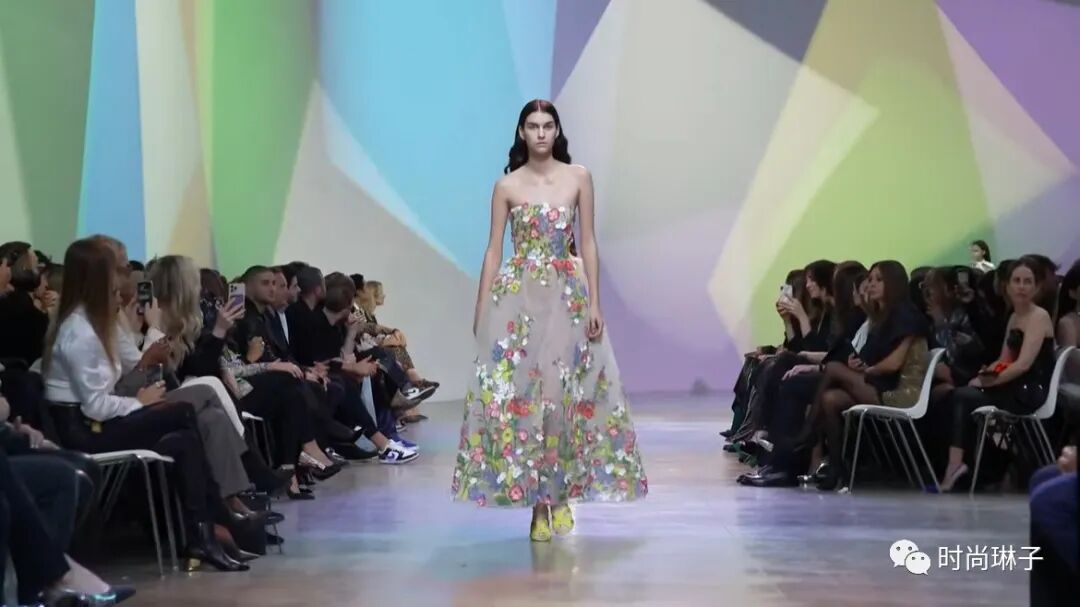 Elie Saab 2023春夏成衣系列以“Summer Breeze 夏日的微风”为主题,系列中华丽的轮廓和精致的细节设计,以及时装秀背景墙,处处都散发着永恒的时尚感和花园般的清新气息。