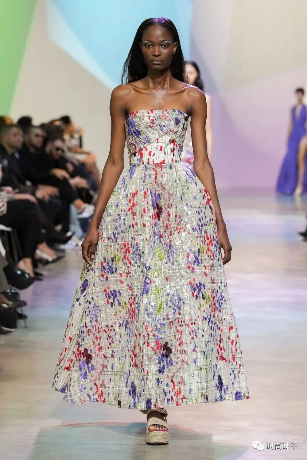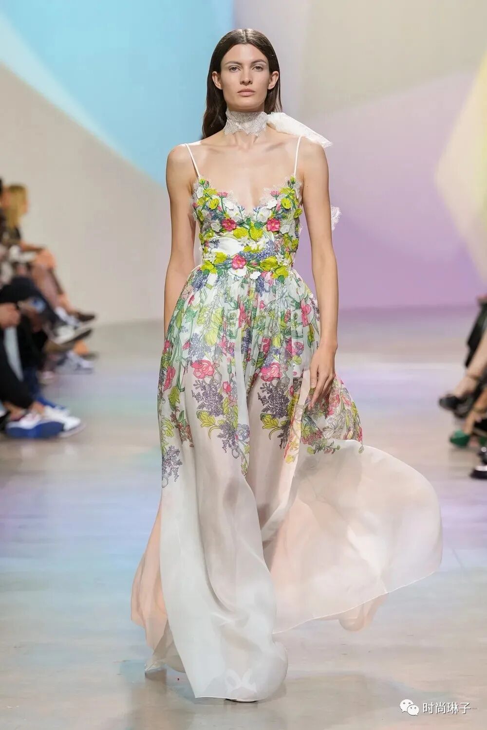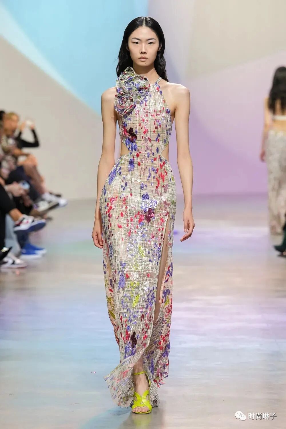 Elie Saab 2023春夏成衣系列以“Summer Breeze 夏日的微风”为主题,系列中华丽的轮廓和精致的细节设计,以及时装秀背景墙,处处都散发着永恒的时尚感和花园般的清新气息。
