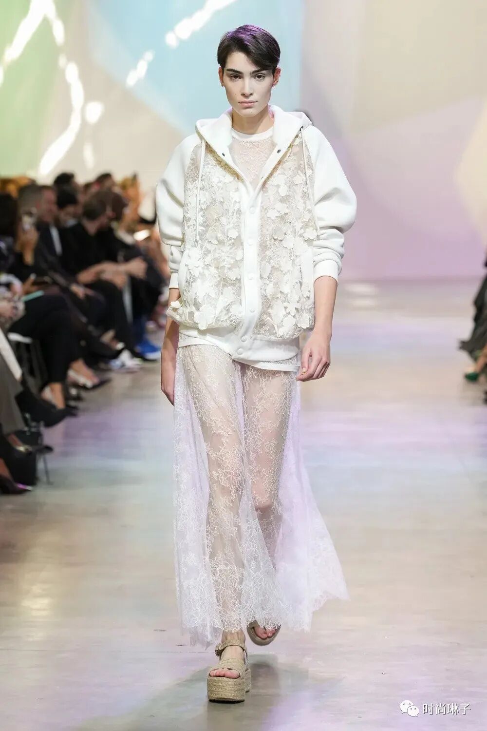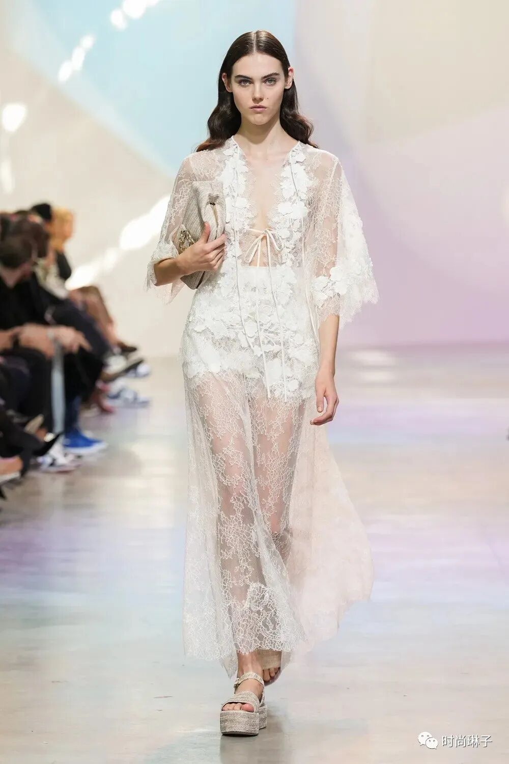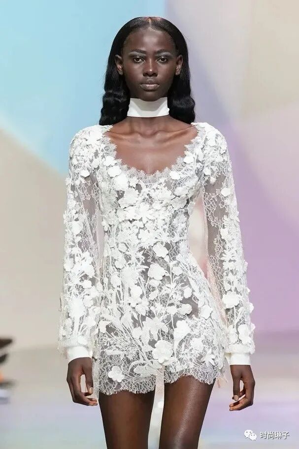 无论是经典的白色衬衫和套装,还是透明的蕾丝上衣和裙装,设计师通过现代感的设计,致敬优雅女性的清澈美好。