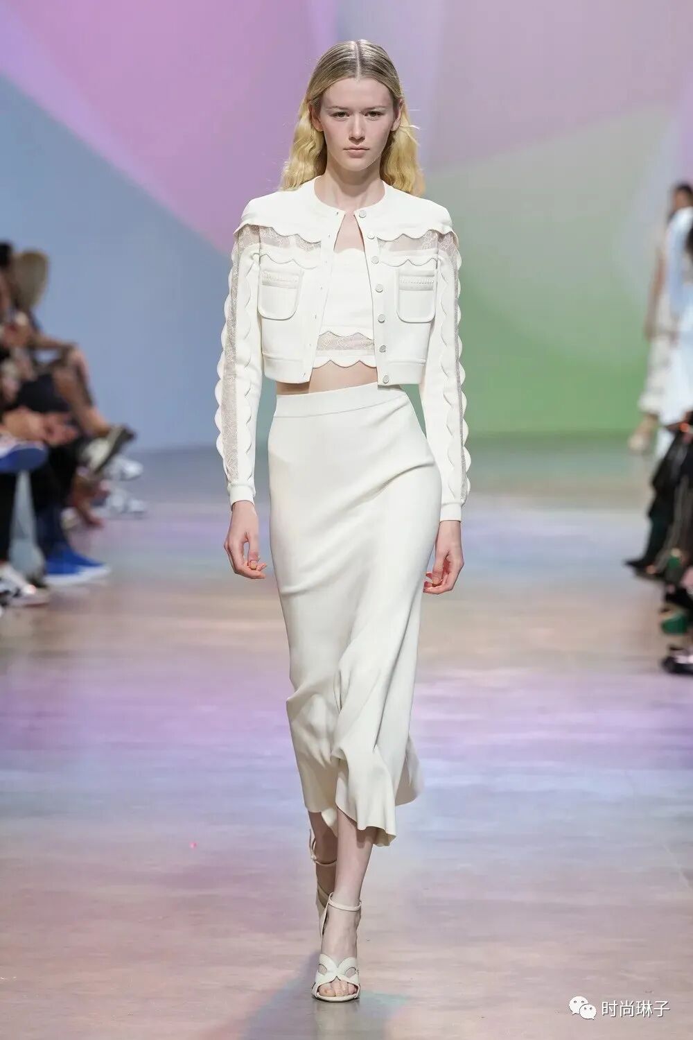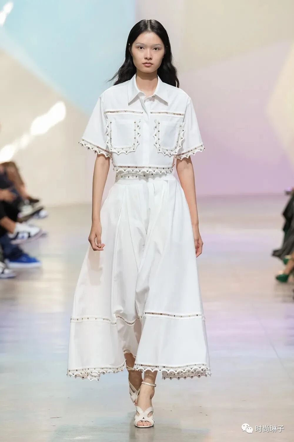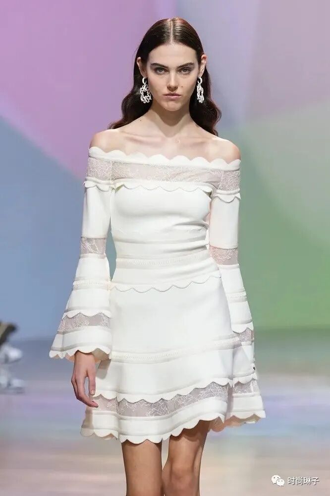 波浪边修饰的白色上衣和夏日裙装,甜美而浪漫。