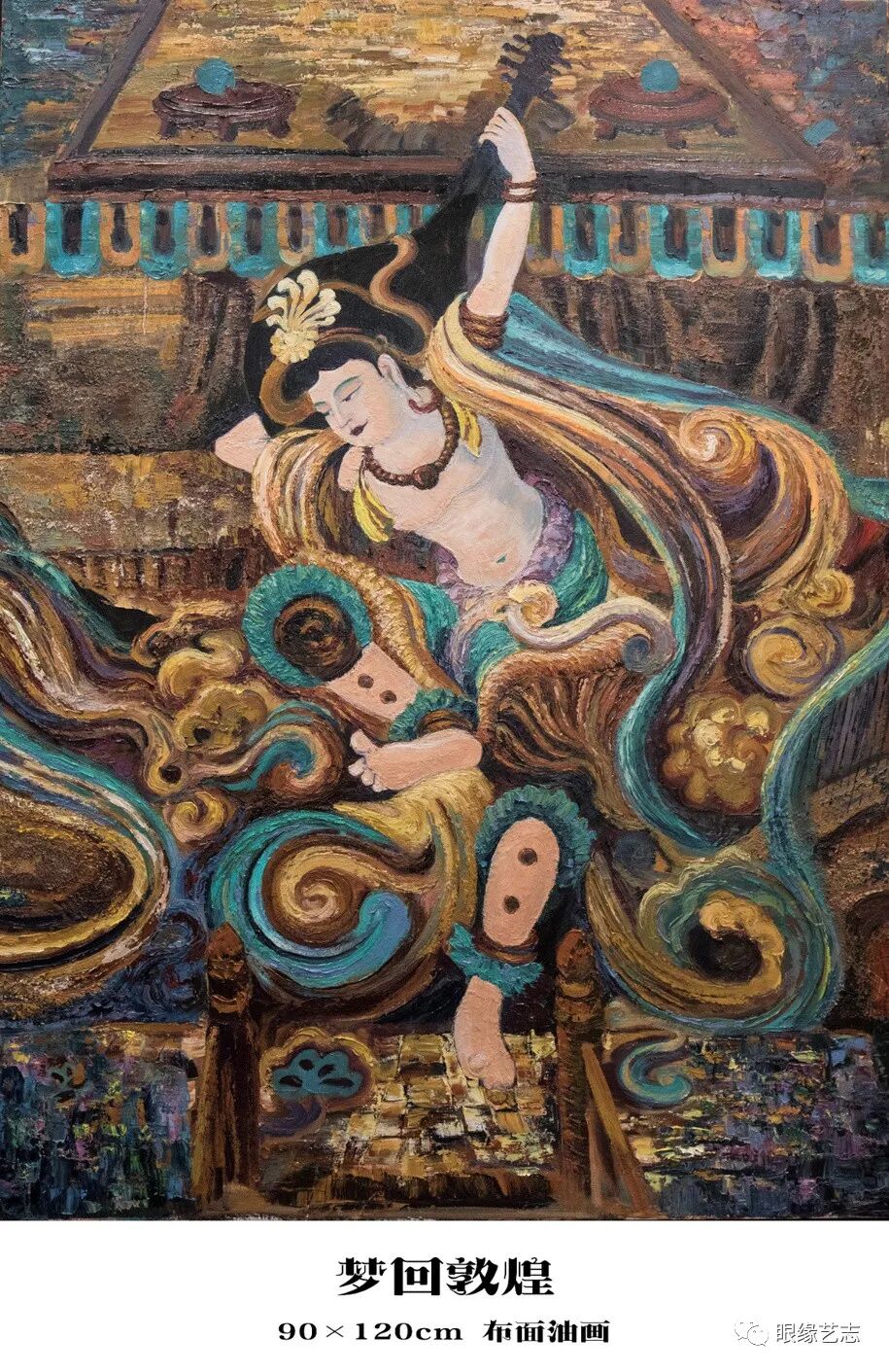 在画家的梦里,石窟的表情是含泪的微笑。微笑源于那孤绝的美丽与自信,泪水则漫透着千年来所承受的无尽磨难。数不胜数的风沙与劫掠之后,石窟宛若一座悲伤的城,任由时光流逝,依旧无法抚慰一尊尊卓然而立的灵魂。