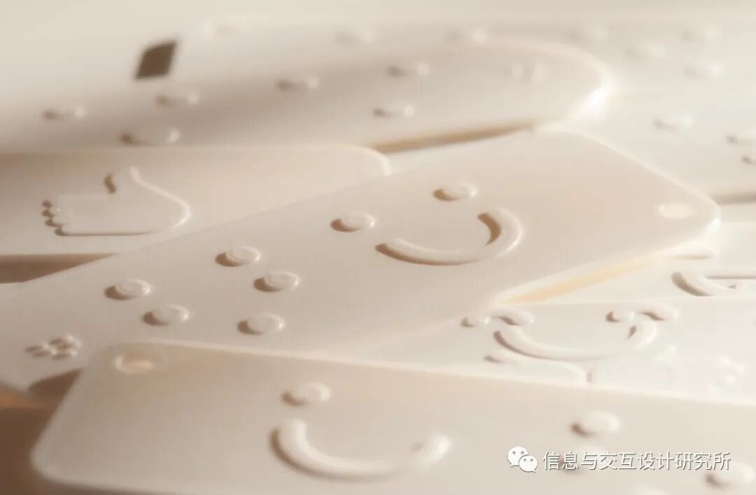 Braille Meets Emoticons是一款专为视障人士设计的表情符号。在日常生活中,视障人士被迫使用盲文里的26个字母来描述他们的情绪。而在这个印刷实验中,22个最常用的表情符号被转换成一个新的9点盲文网格。它试图为视障人士搭建一座通往视觉语言的桥梁,让他们有机会在一个“图像”中触摸一个可识别的表情符号,并立即感受到相关的情绪。