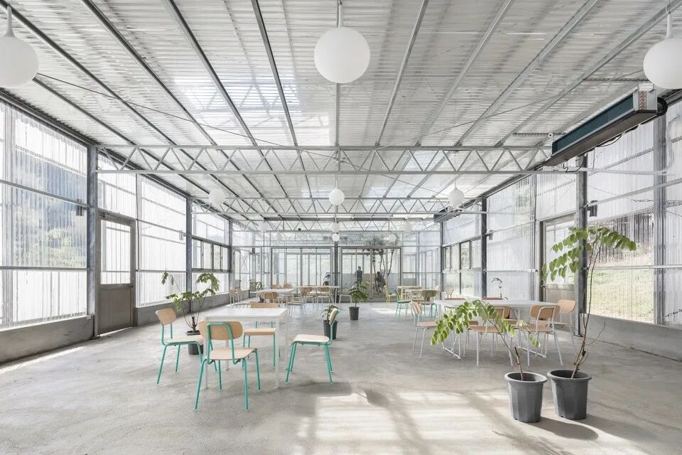 内层墙则以透明小角浪板,创造了室内空间充足的光线,也模糊弱化了人为与自然的边界,重组室内活动,展演于自然环境之中。