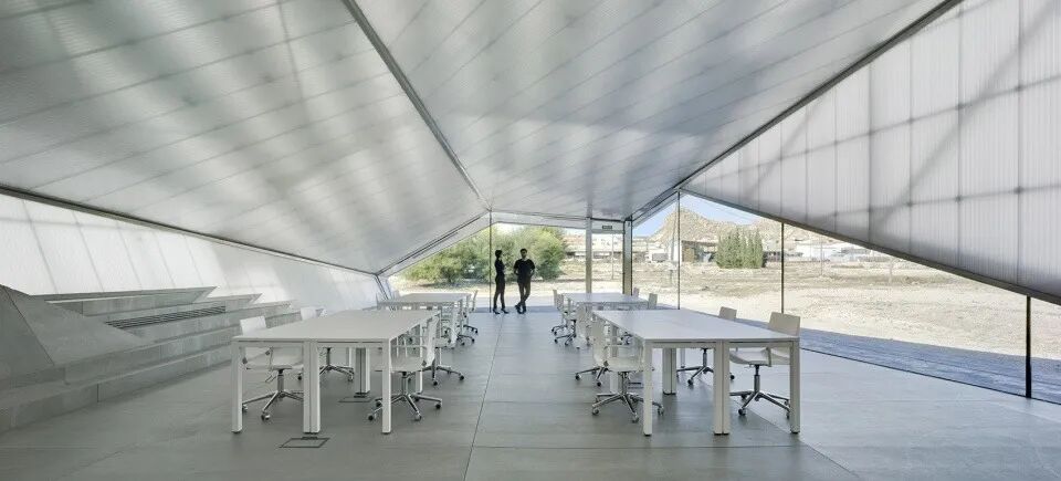 “企业孵化器”是创业者们分享知识、经营、创意和情感的场所。开放的室内空间被半透明的双层聚碳酸酯墙面环绕,使人能够从建筑外部感受其内部的活动,同时令建筑外观随着时间不断产生变化。